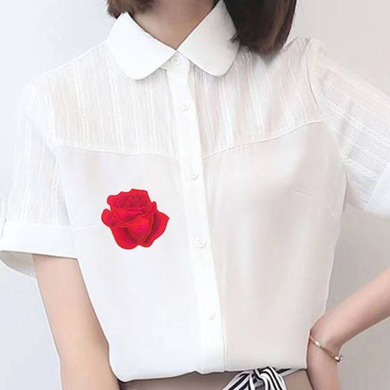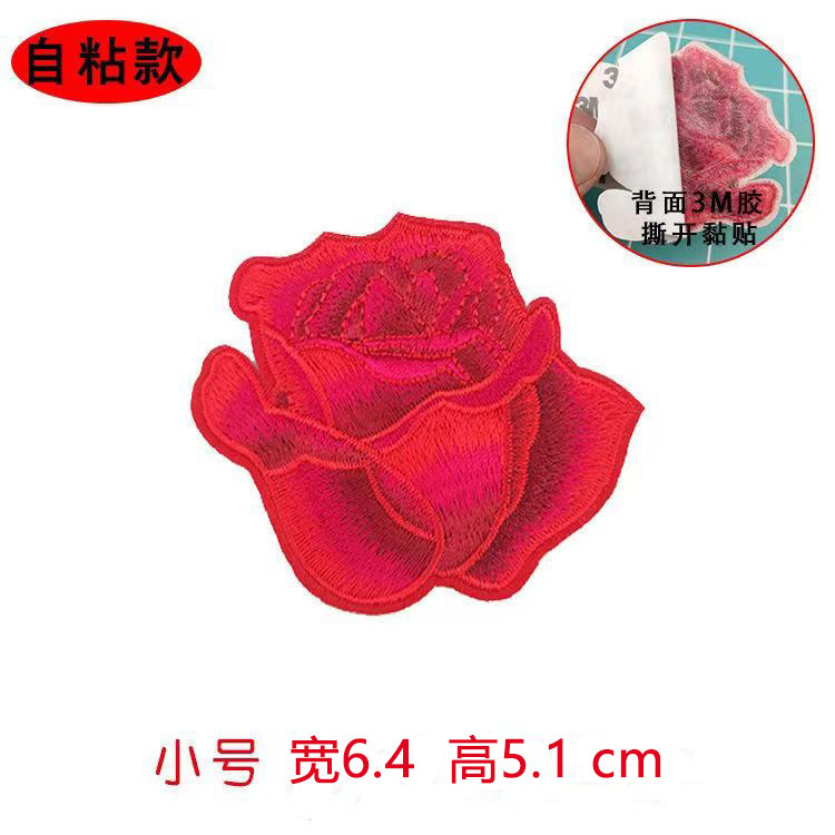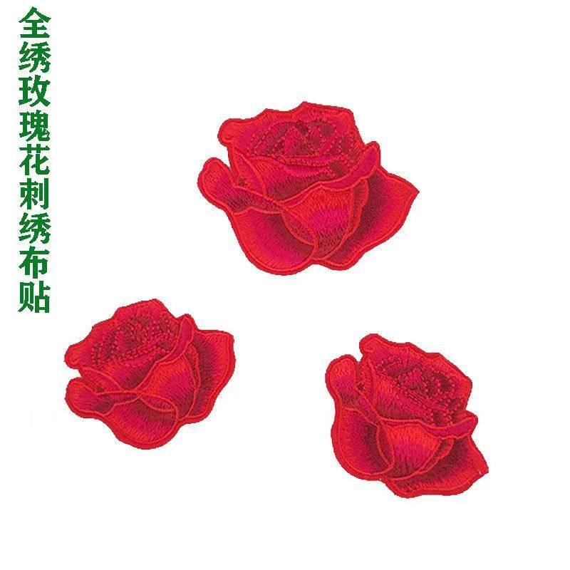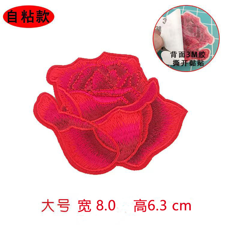 💥惊艳!玫瑰花朵刺绣布贴自粘红色补丁贴,羽绒服旗袍的完美装饰💖