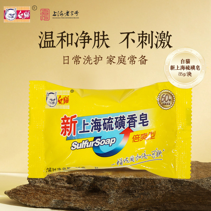 📚 白猫新上海硫磺皂去除螨虫香皂洗手香皂男女洗脸洗澡沐浴清洁肥皂
