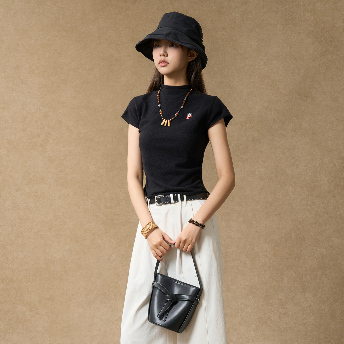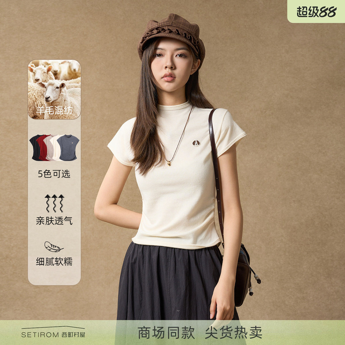 📚 西町村屋极简针织衫女半高领基础款打底卡通刺绣小衫XHAC10710