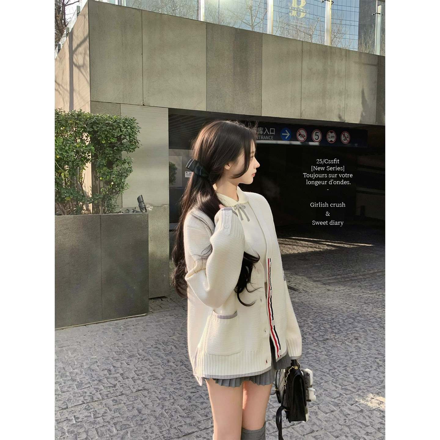 📚 迟伞伞26/ss 晚冬回信 tb高密度羊毛针织开衫上衣蝴蝶结百褶半裙