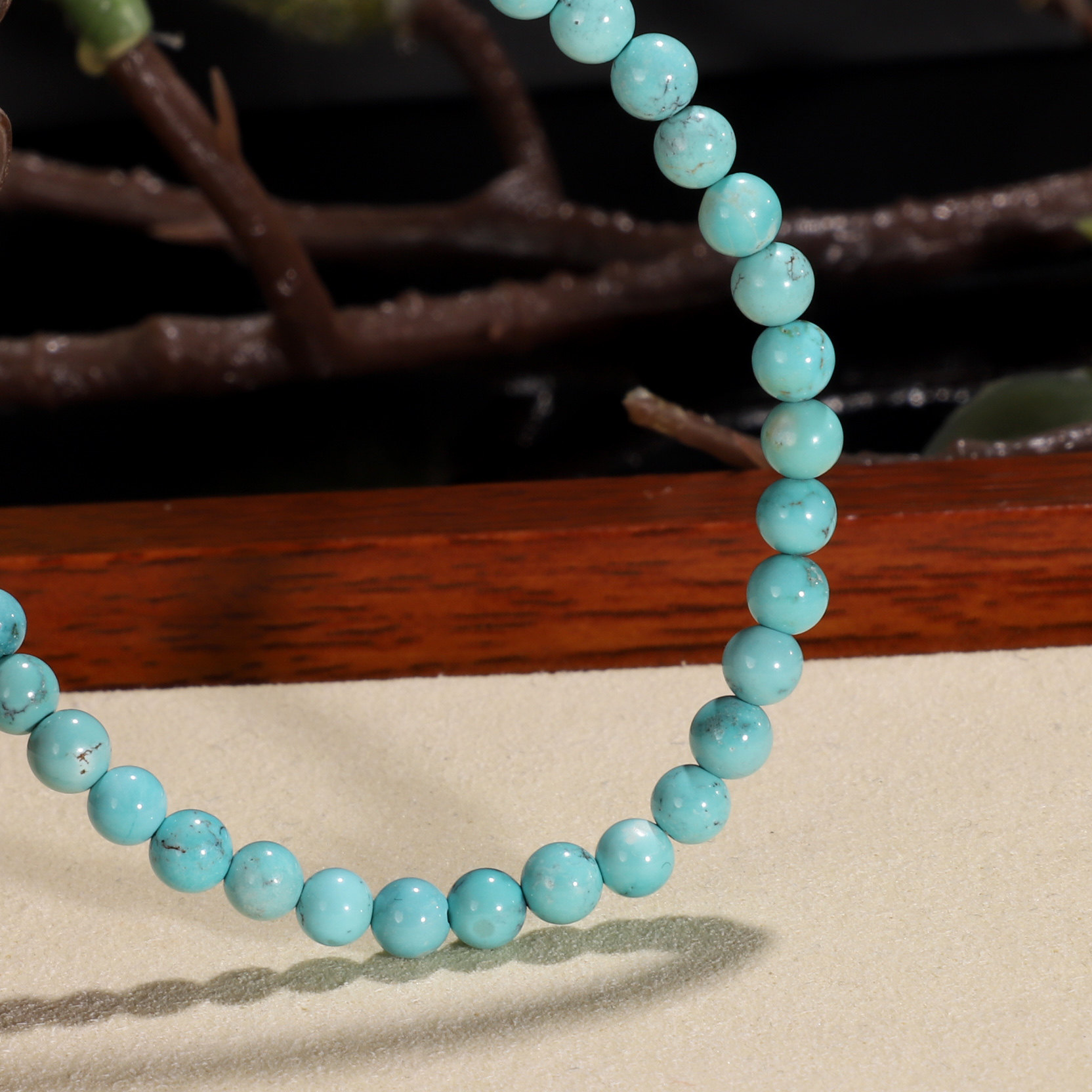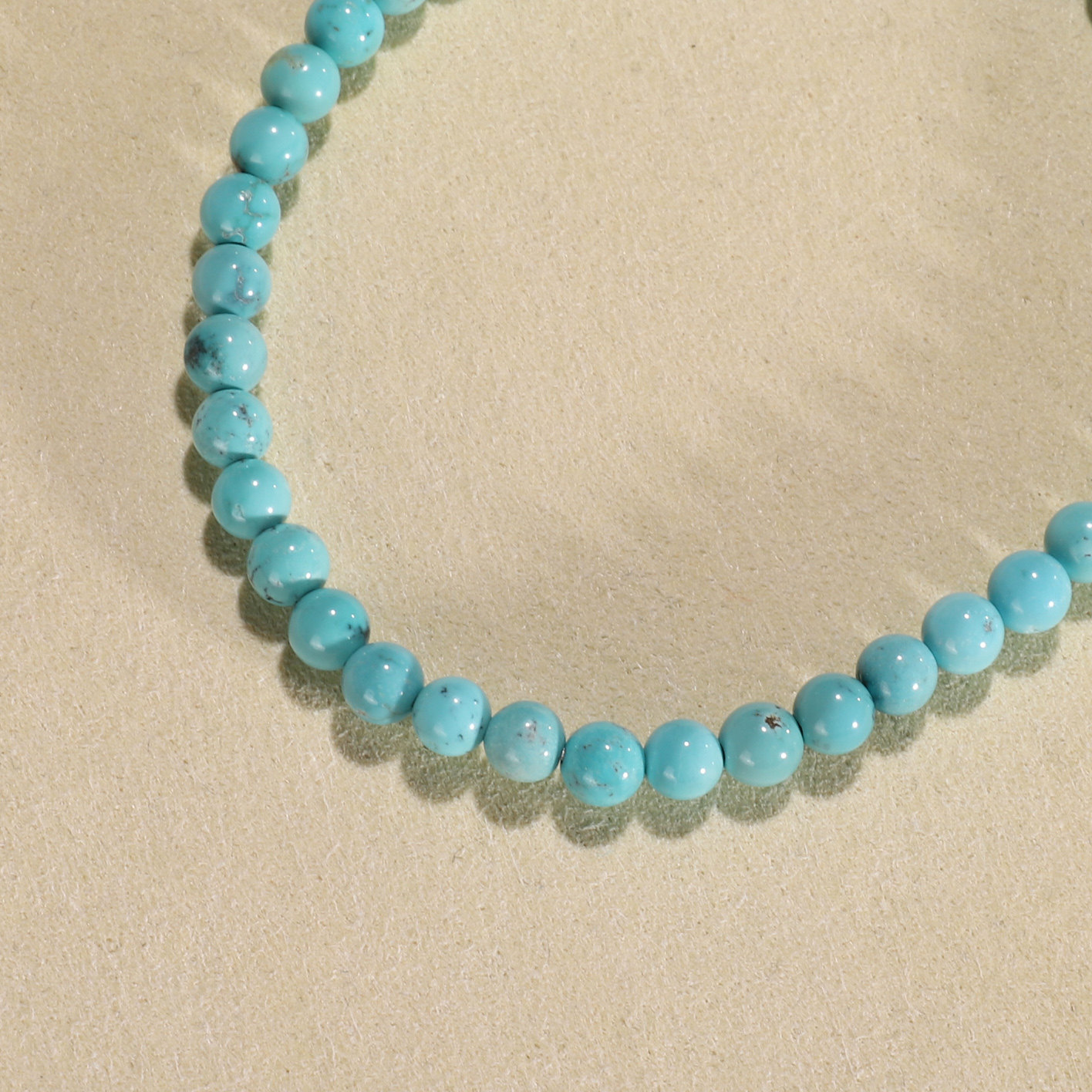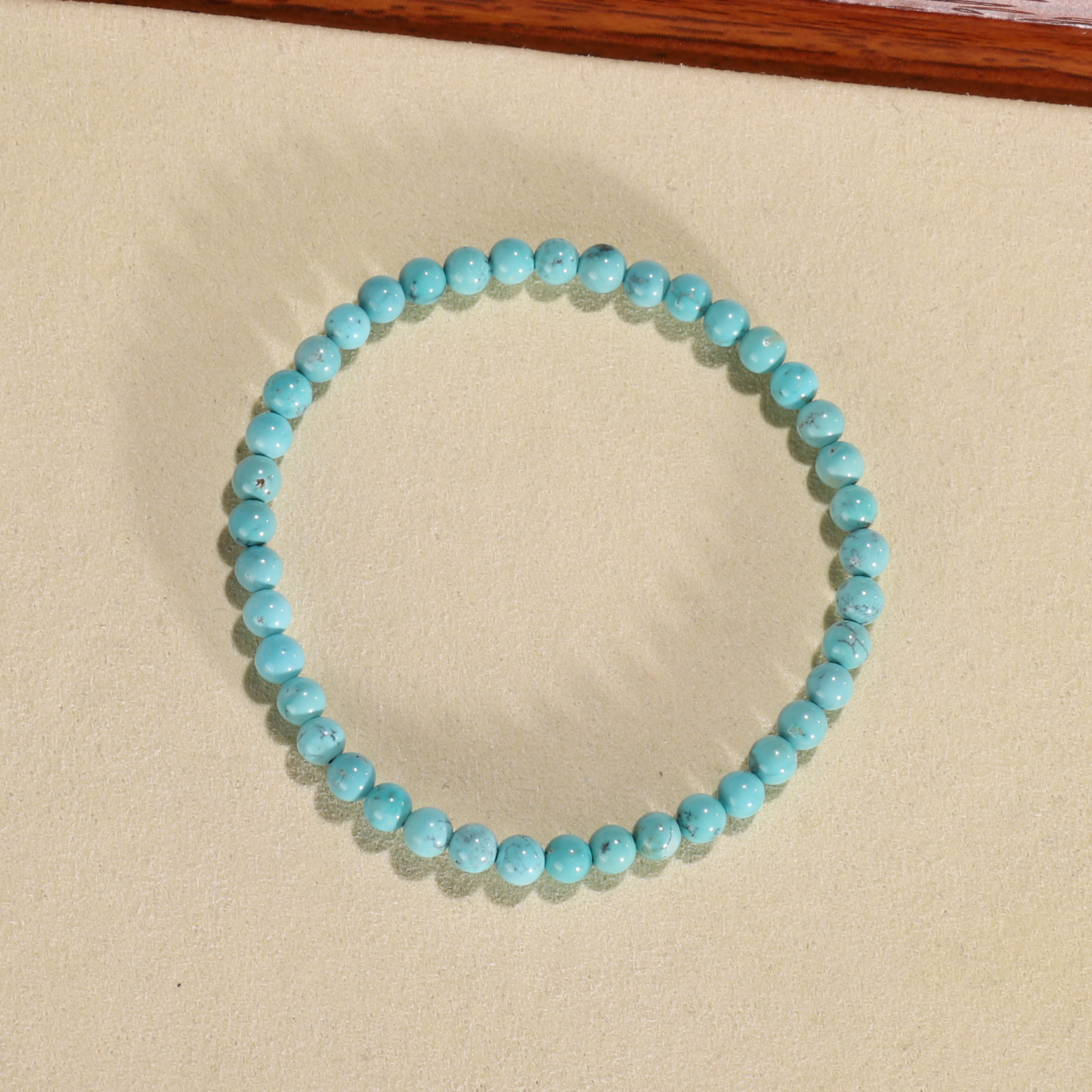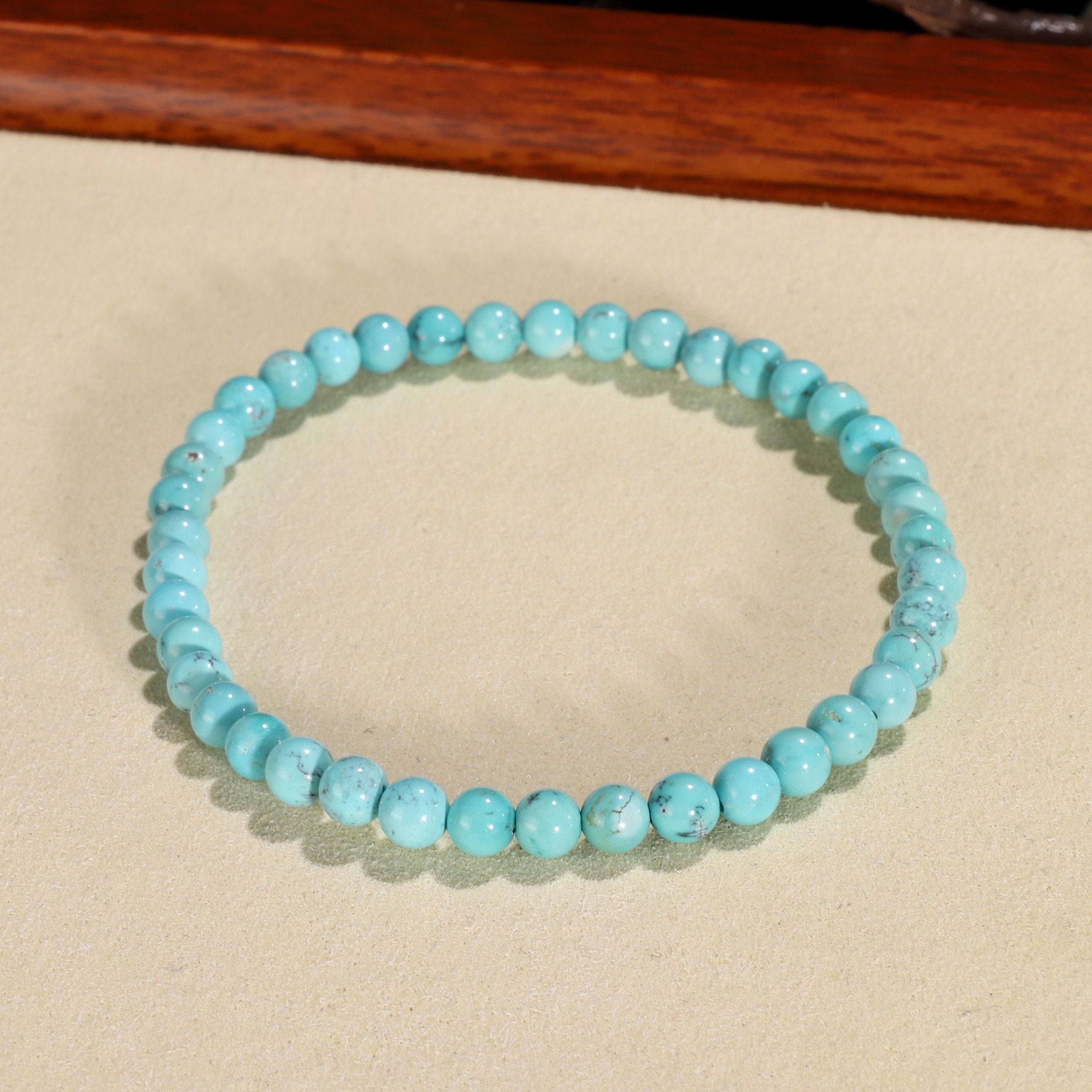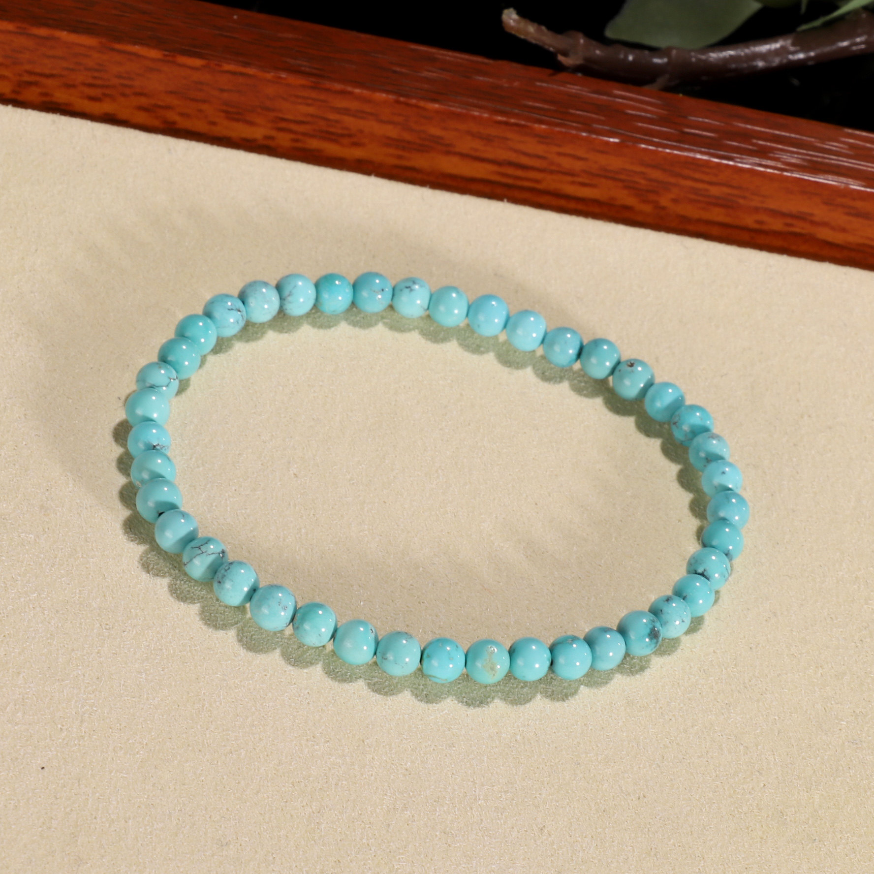📚 天然原矿绿松石手链4.5mm 湖北十堰高瓷蓝铁线绿松圆珠手串WU32A