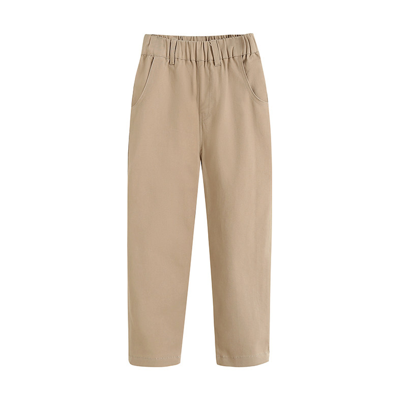📚 男女童纯棉弹力卡其色西裤儿童米色伊顿休闲裤小学生加绒校服裤子