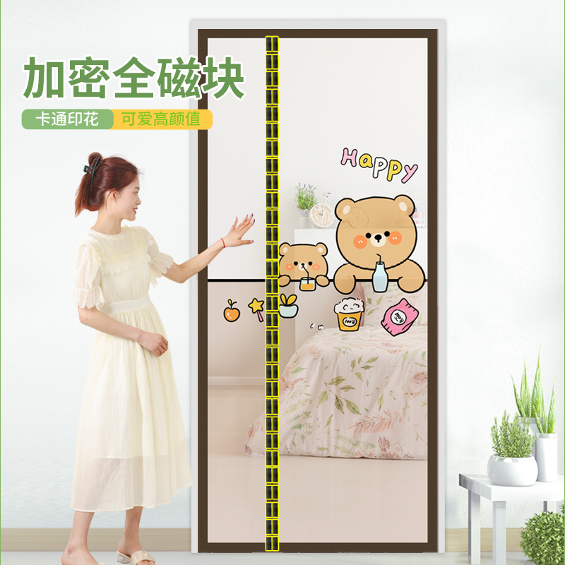 📚 侧开防蚊门帘纱帘夏季家用魔术贴加密磁性卧室纱窗网纱门卡通新款
