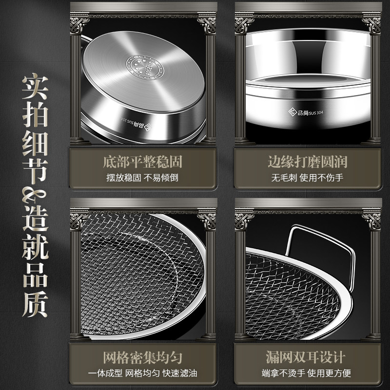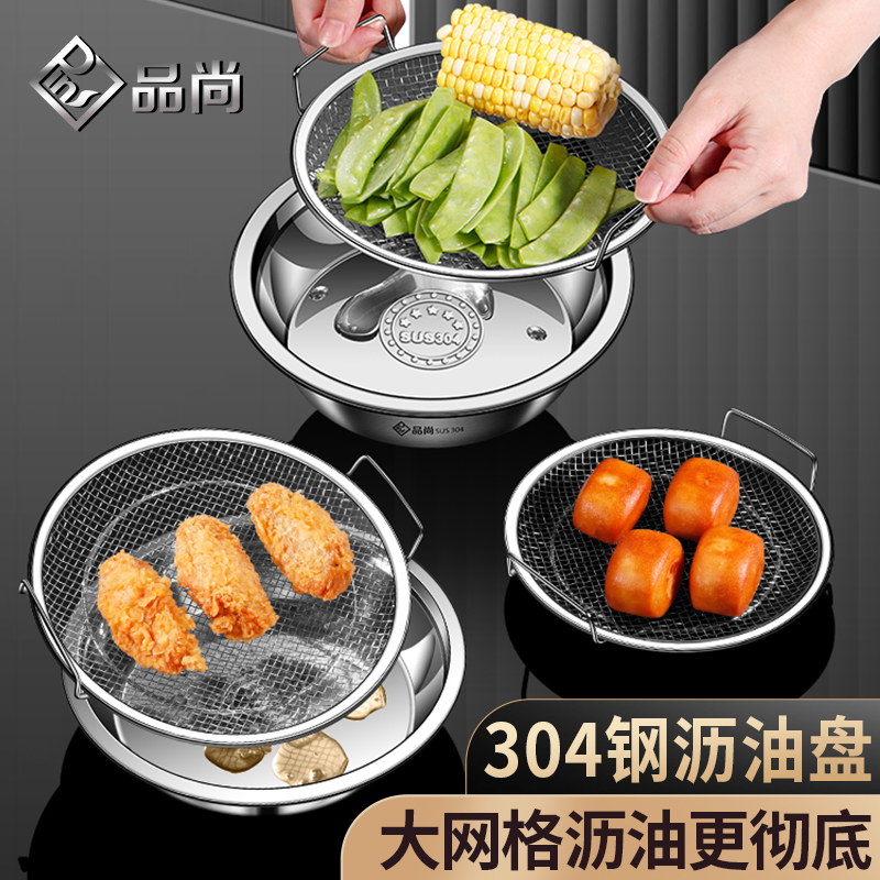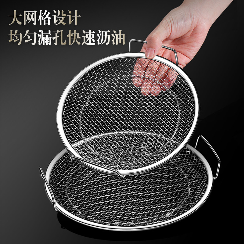 📚 沥油盘家用304不锈钢厨房油炸过滤网架漏油托盘沥水盘滤油网筛