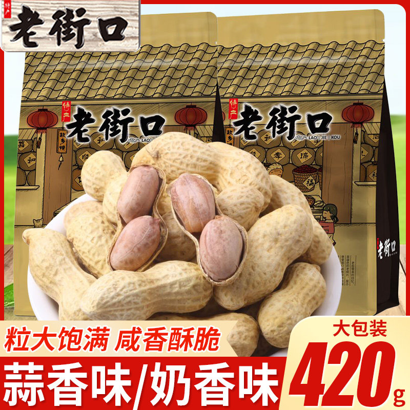 📚 老街口花生蒜香奶香多味炒货下酒菜带壳零食休闲食品小吃袋装批发