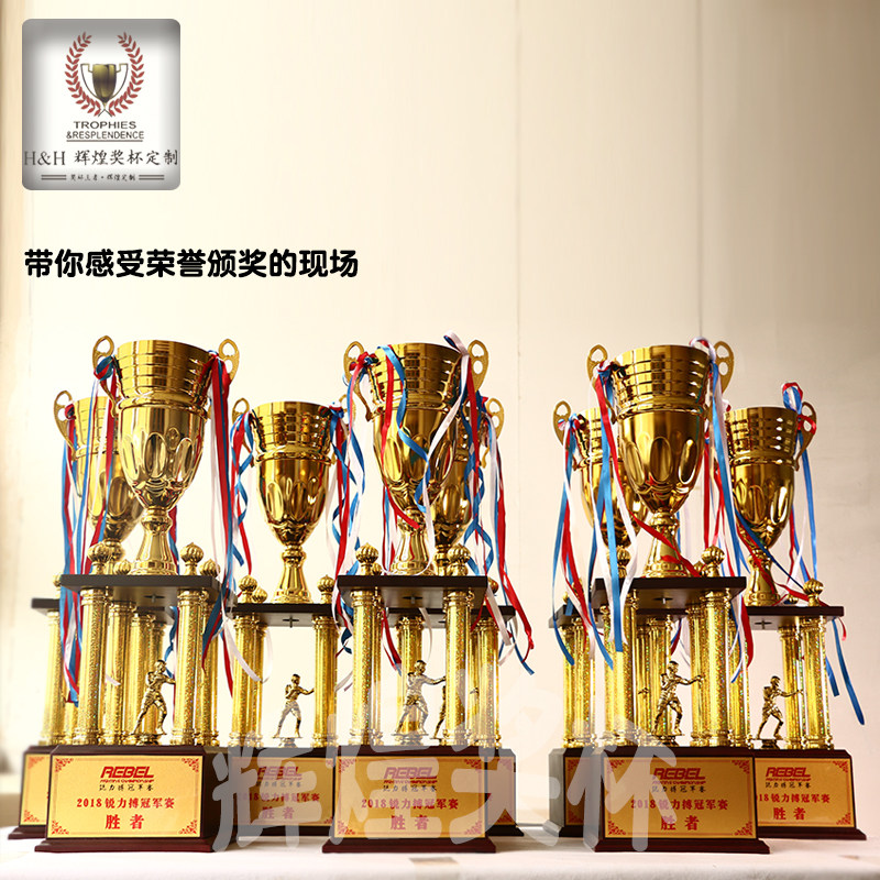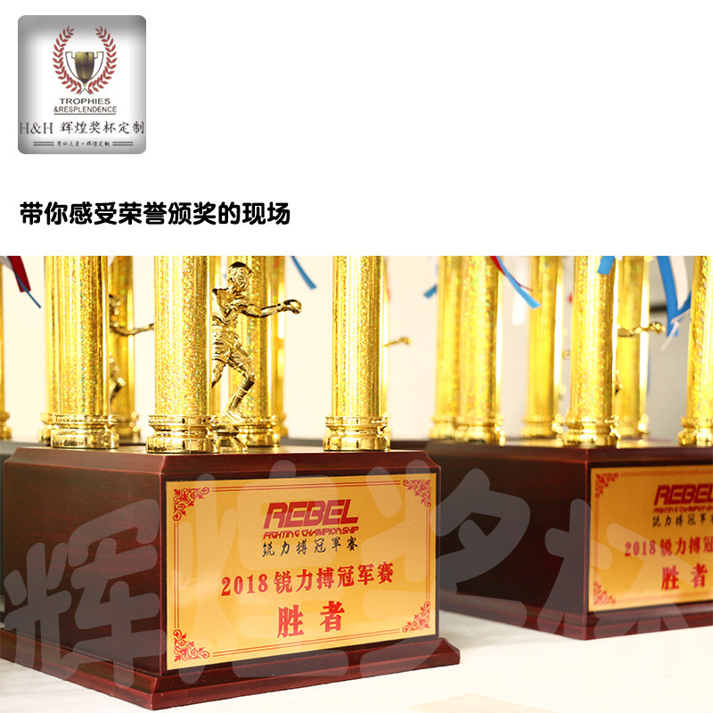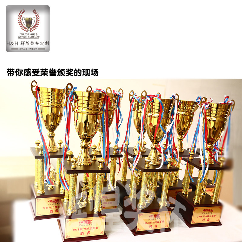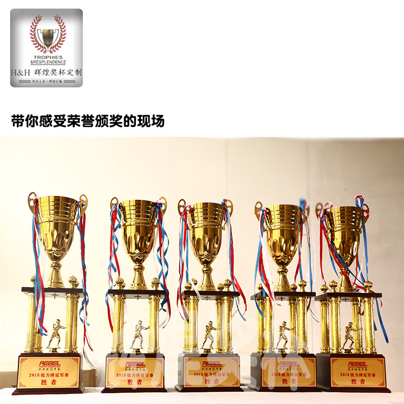 📚 新款高大金属奖杯木质底座四柱杯私人定制各类比赛专用个性带设计