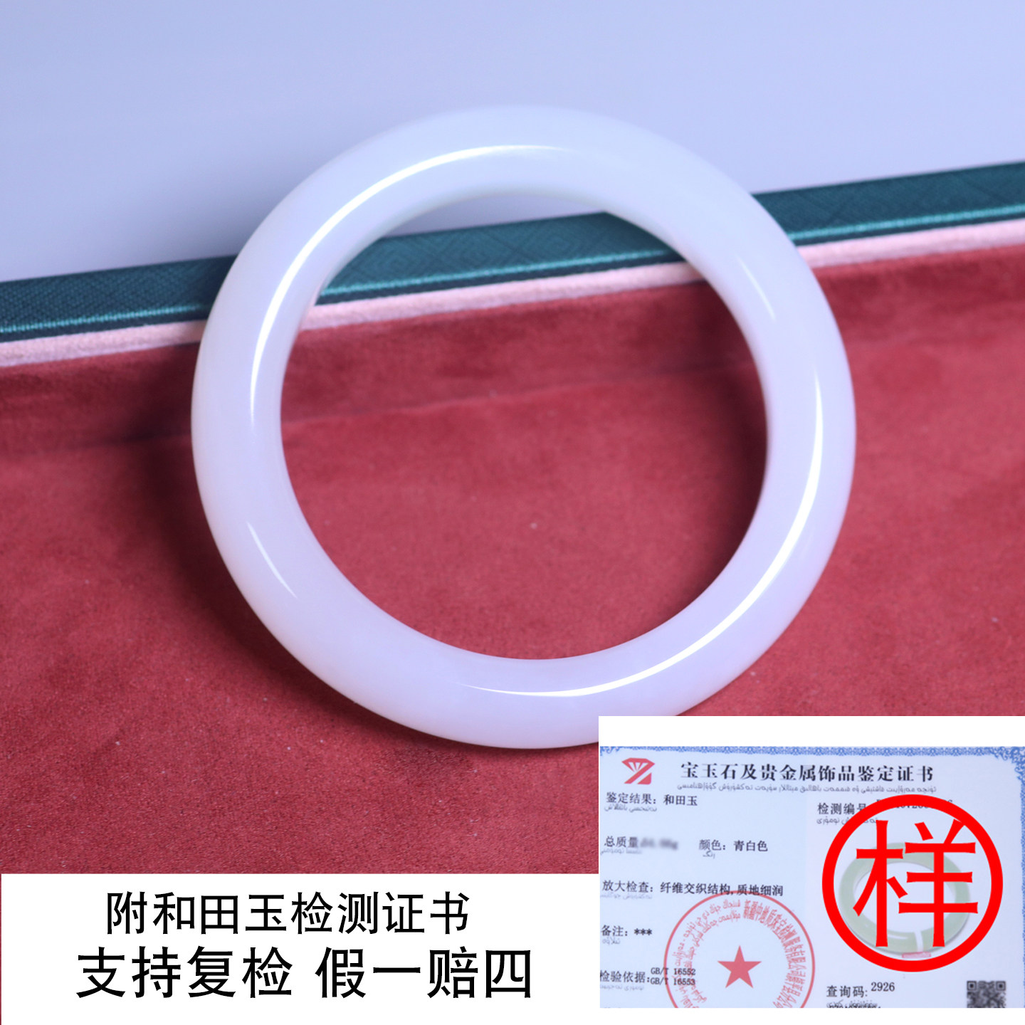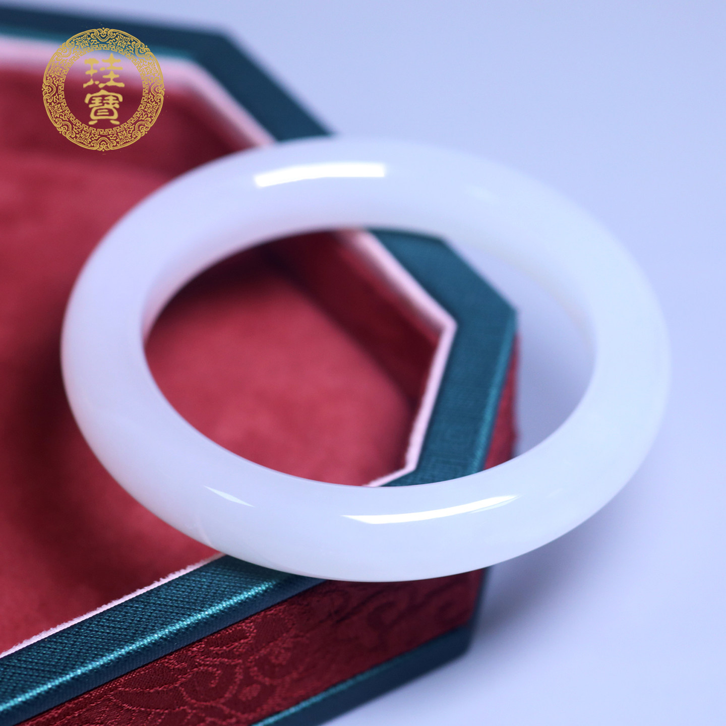 📚 珪宝57.3mm和田玉羊脂玉宽条手镯女款白月光玉镯子手饰带证书1270
