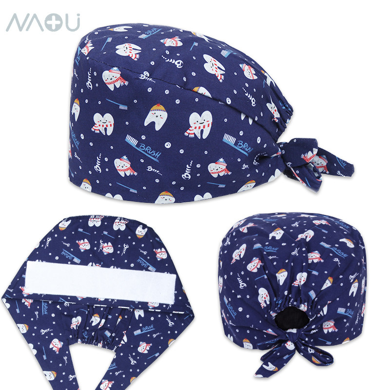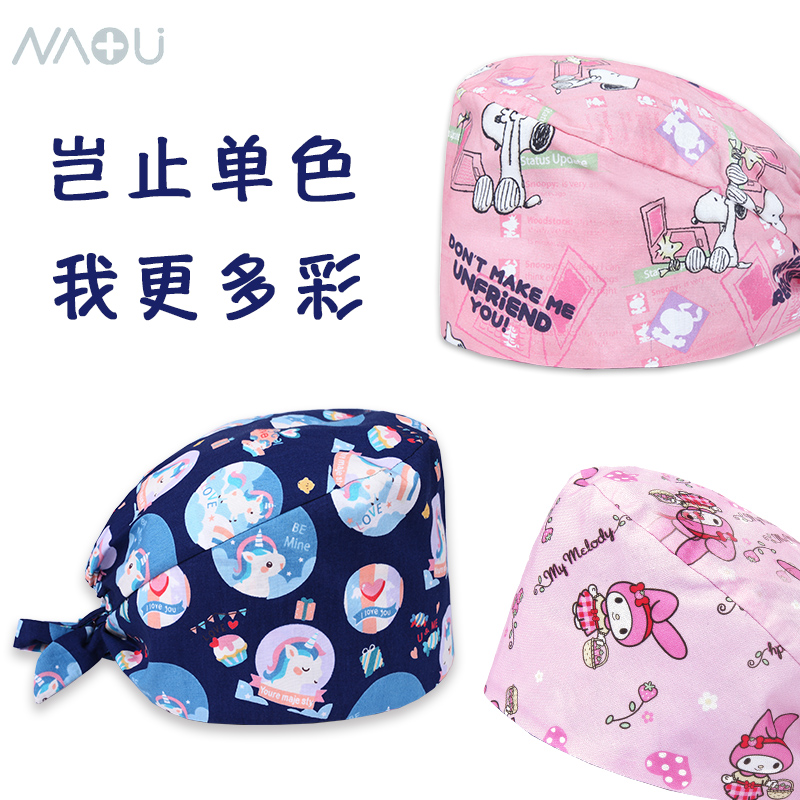 📚 南欧鱼手术帽子男女医生护士帽包头巾纯棉印花手术室工作帽月子帽