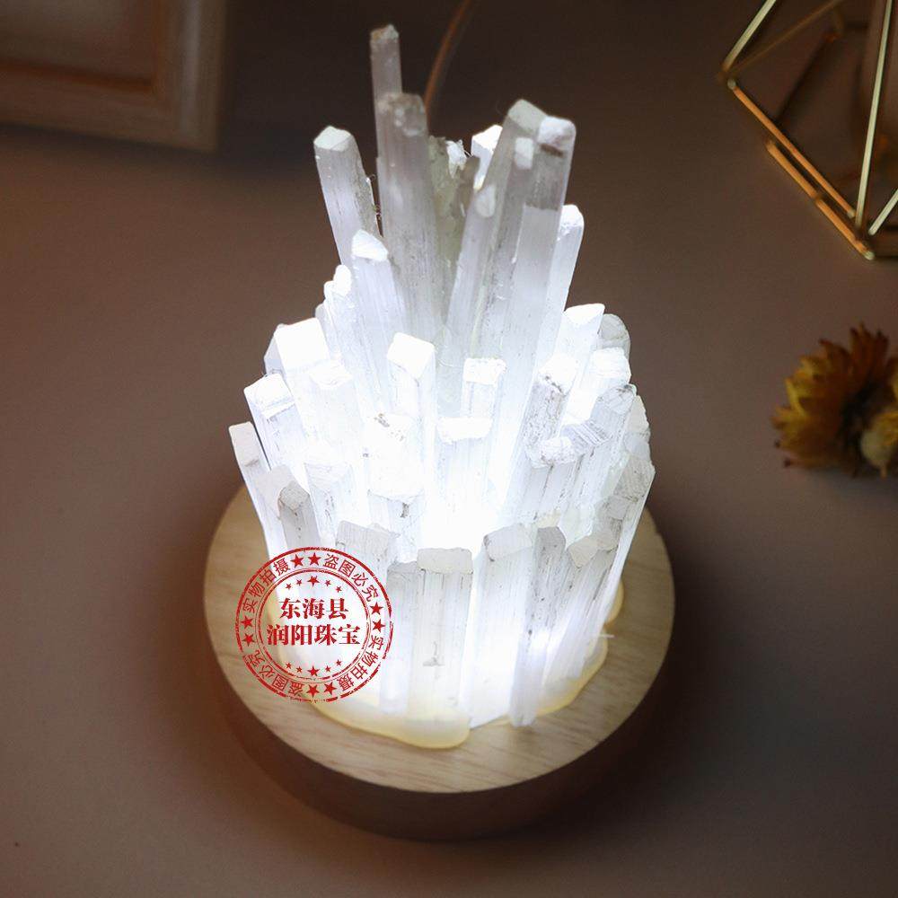 📚 天然水晶石膏石小夜灯健康能量摆件护眼弱光装饰卧室床头灯