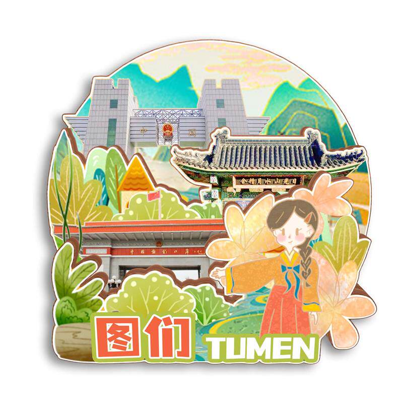 📚 原创吉林图们江百年部落日光山冰箱贴纪念品木质文创礼赠工艺品