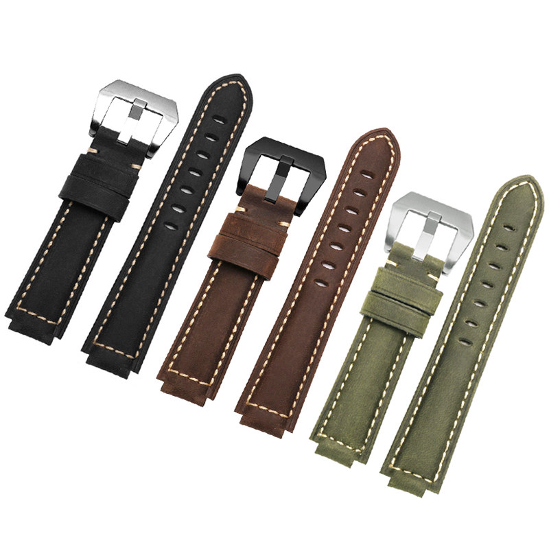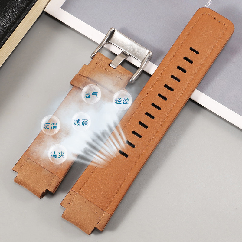 📚 磨砂真皮手表带适配TIMEX天美时潮汐指南针T2N721 T2N720凸口表链