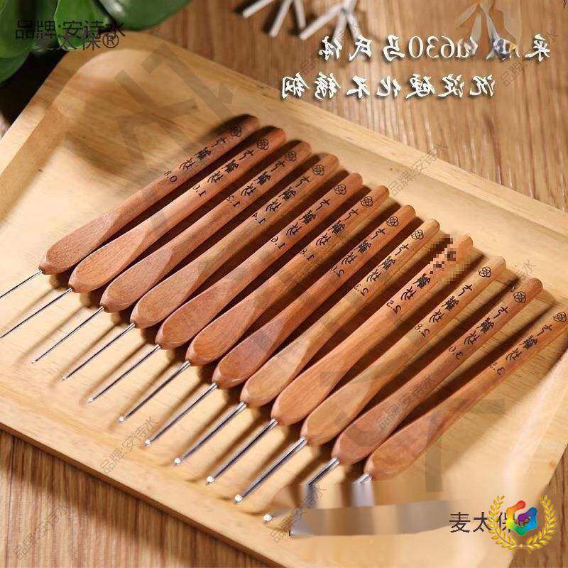 📚 ?针坊枣木柄三钩针F$px}&aq手工织工具手工毛编七线不锈钢麦太代