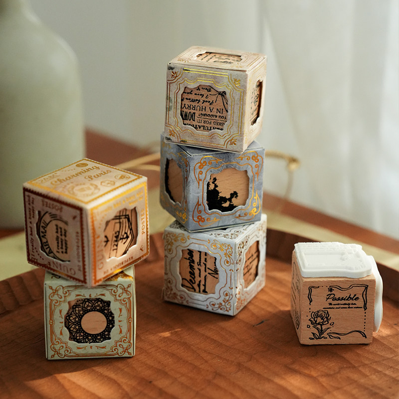 📚 觉物文研所 复古英文花卉木质印章 手帐造景diy装饰标记素材印台