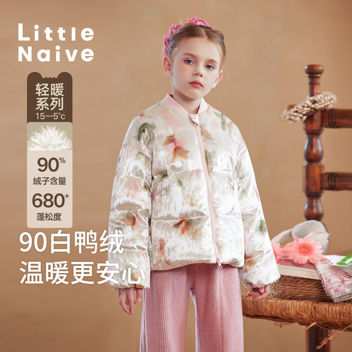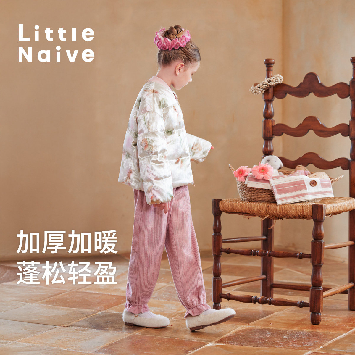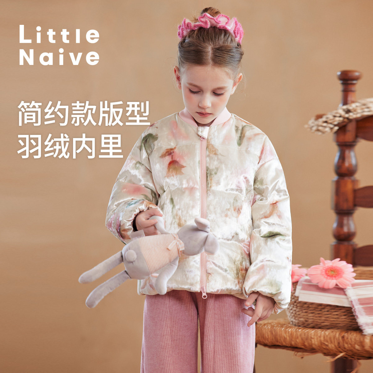 📚 Little Naive外套儿童新中式丝绒加厚羽绒服冬季女童保暖蓬松冬装