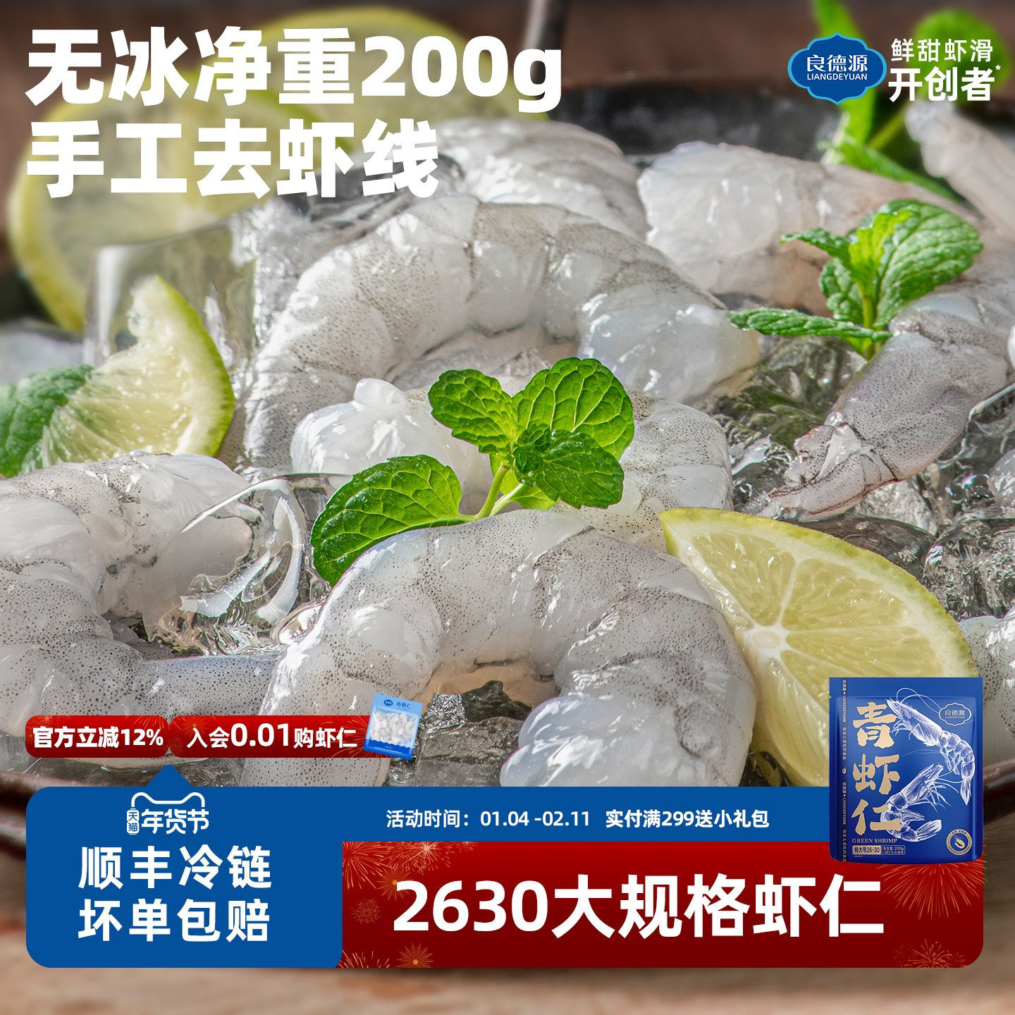 📚 良德源特大号青虾仁去虾线2630虾仁