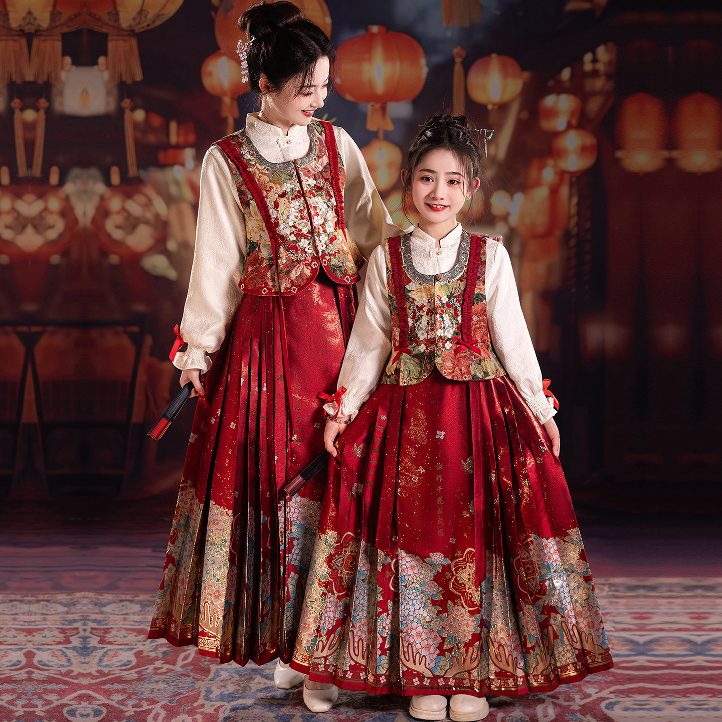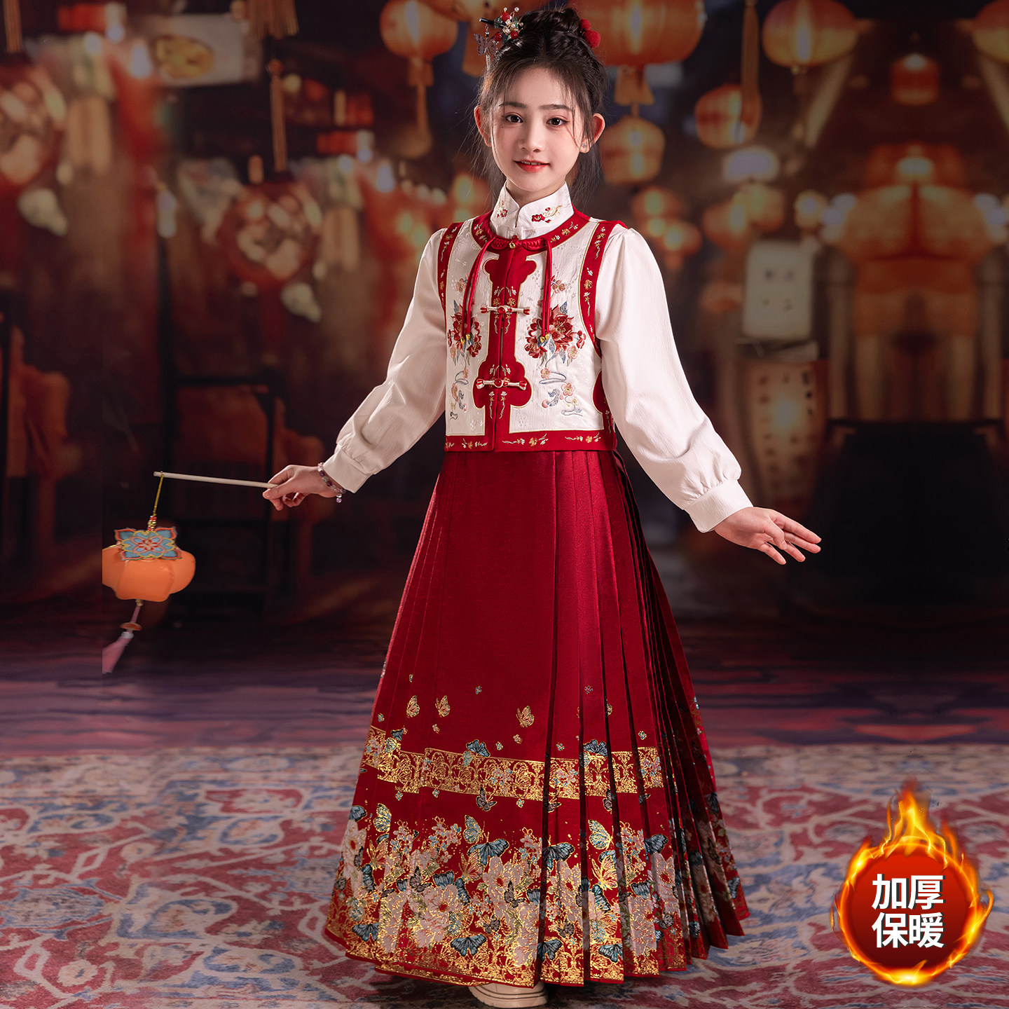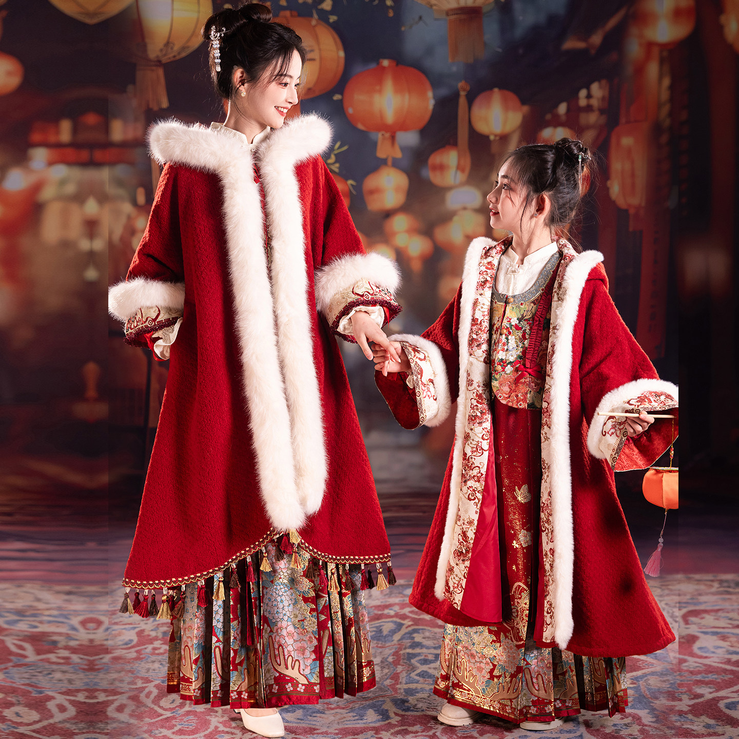 📚 女童马面裙套装2026新款冬季明制汉服儿童中国风拜年服加绒亲子装
