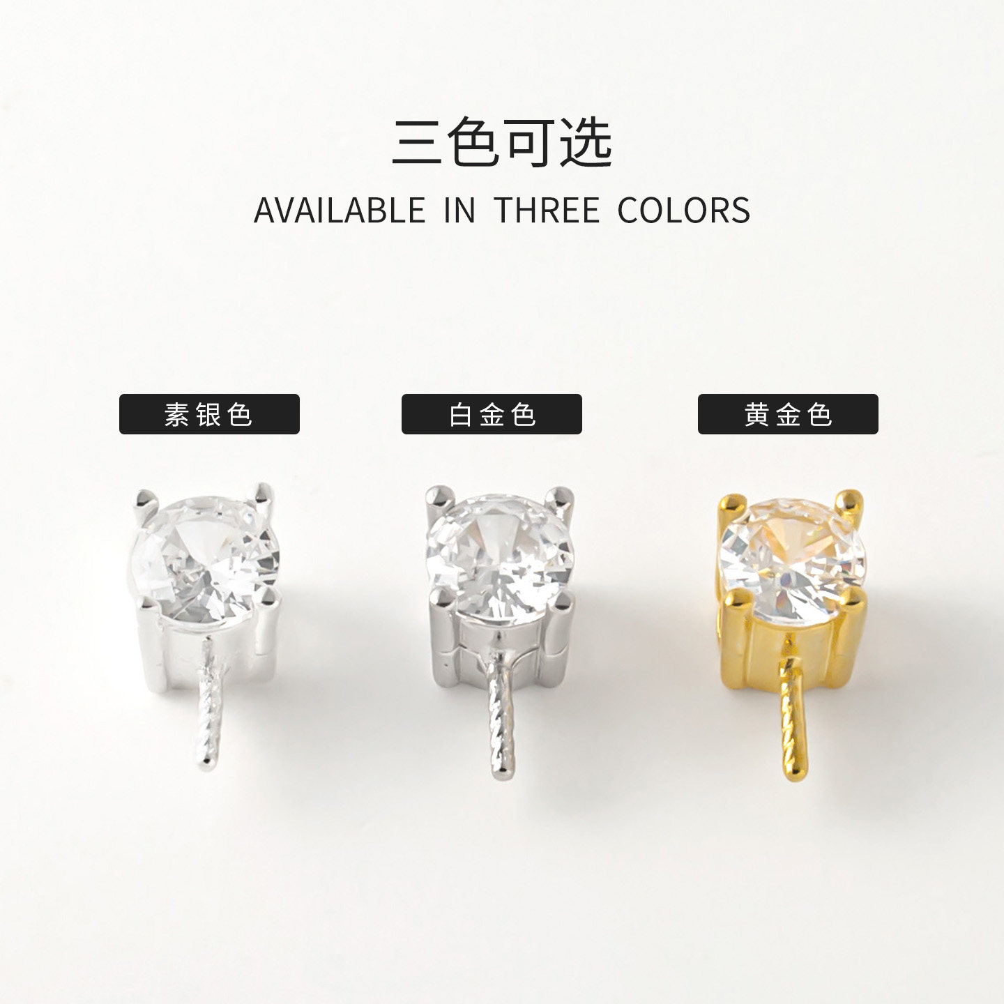 📚 S925纯银镶嵌锆石吊坠空托DIY项链配件经典戴王妃半孔珍珠吊坠扣