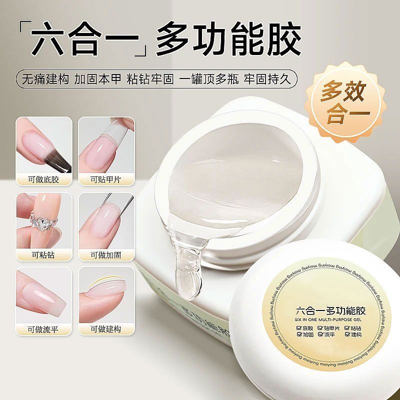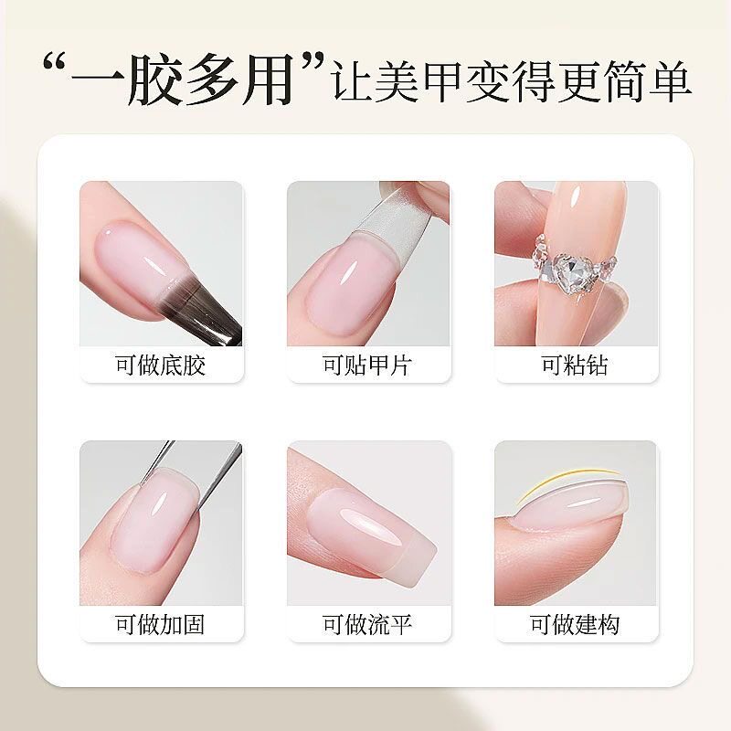 📚 六合一多功能建构底胶贴甲片粘钻流平塑型本甲光疗胶美甲店专用胶