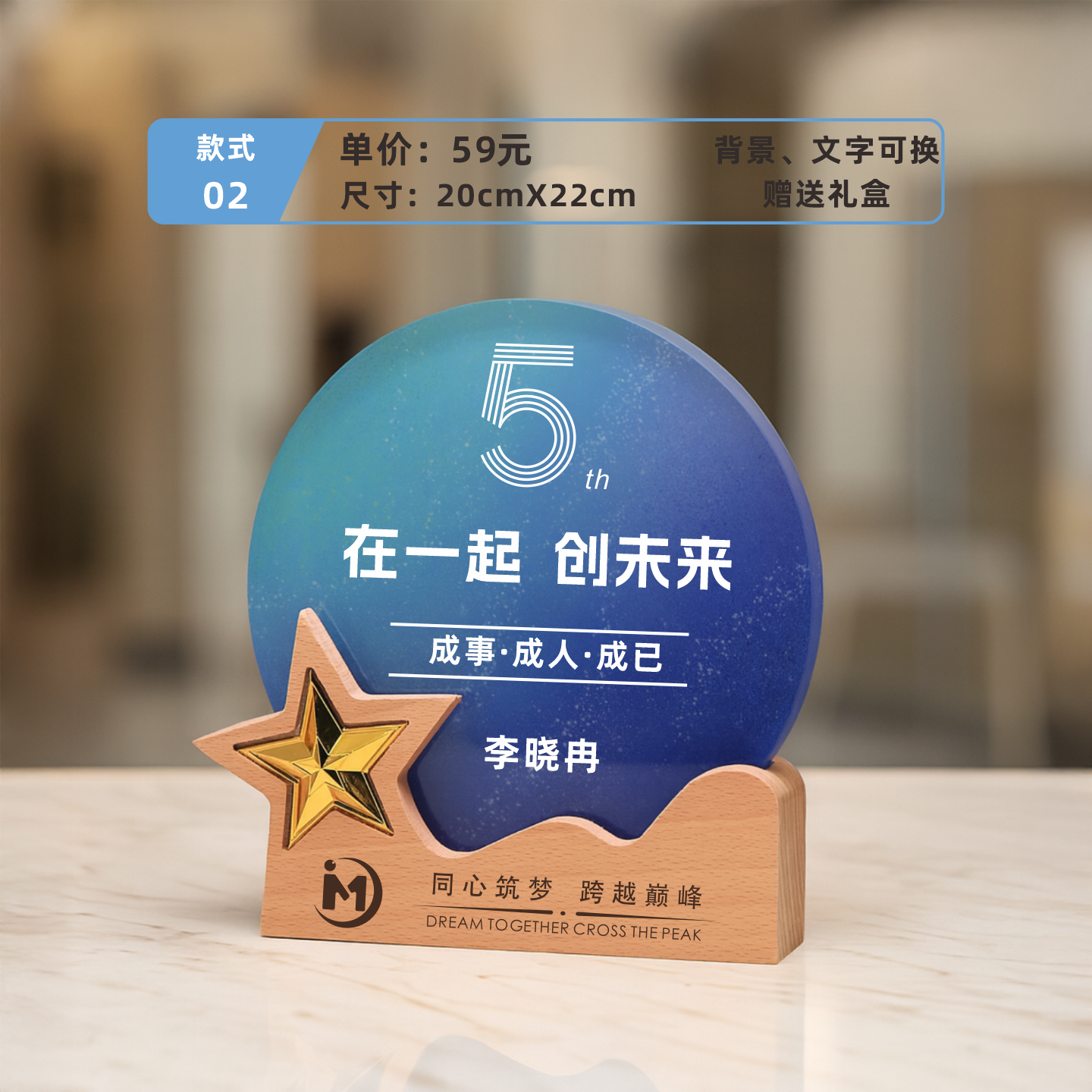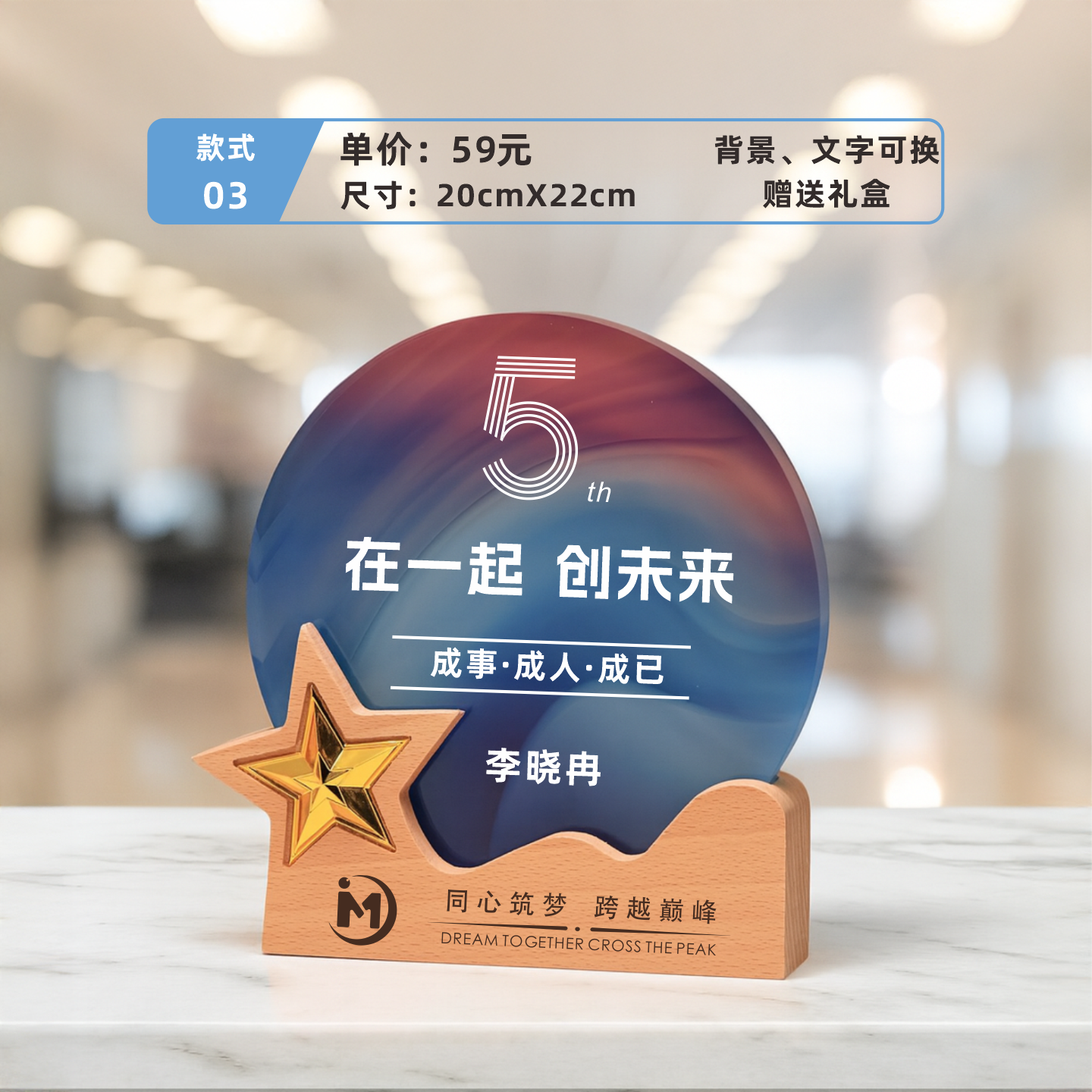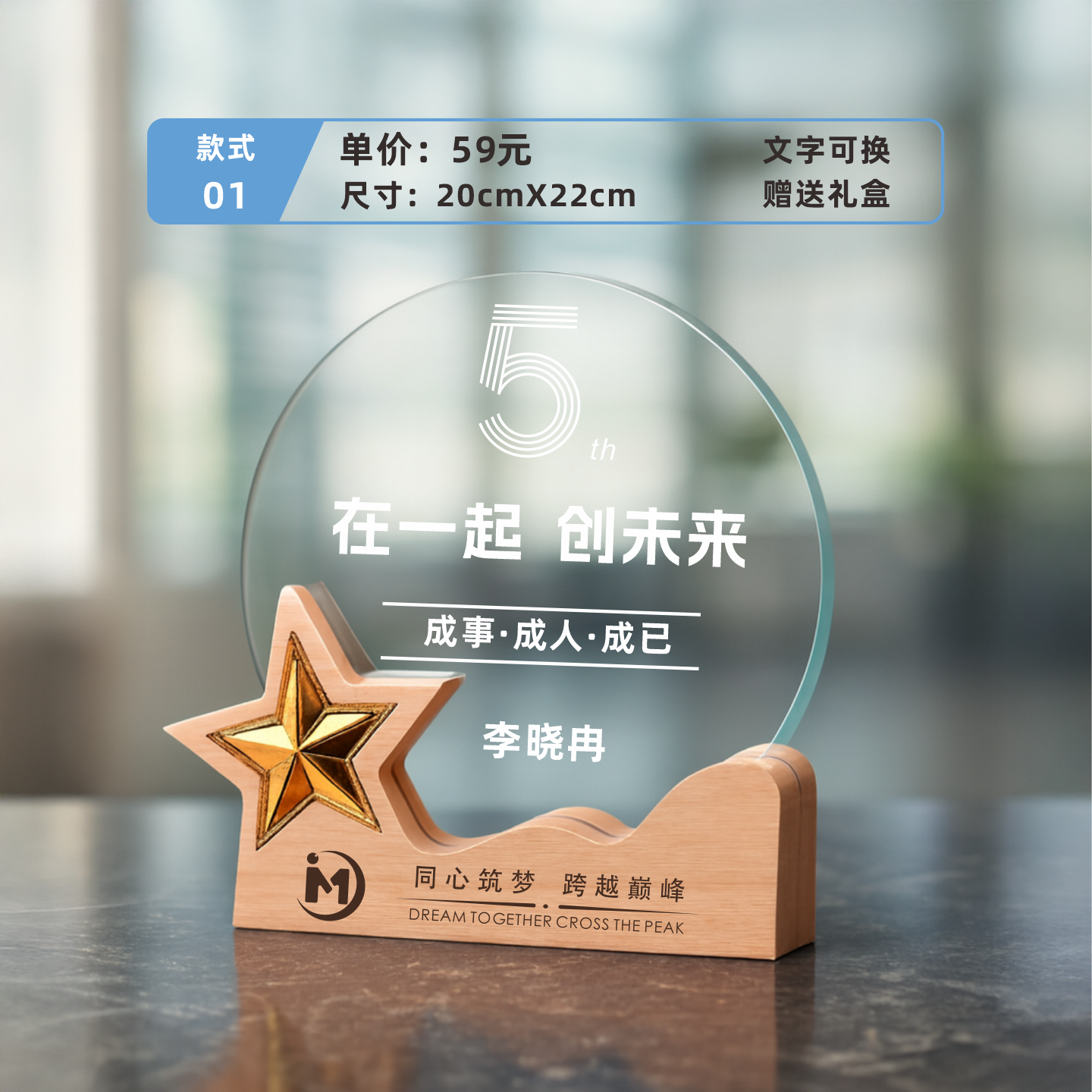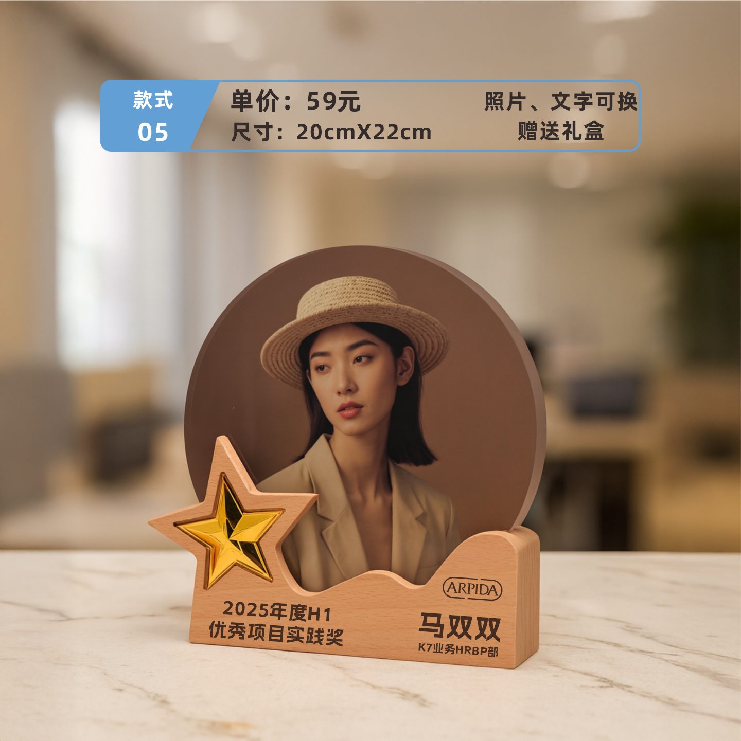 📚 实木水晶奖杯奖牌定制定做创意团队人像照片年会荣誉退休优秀员工