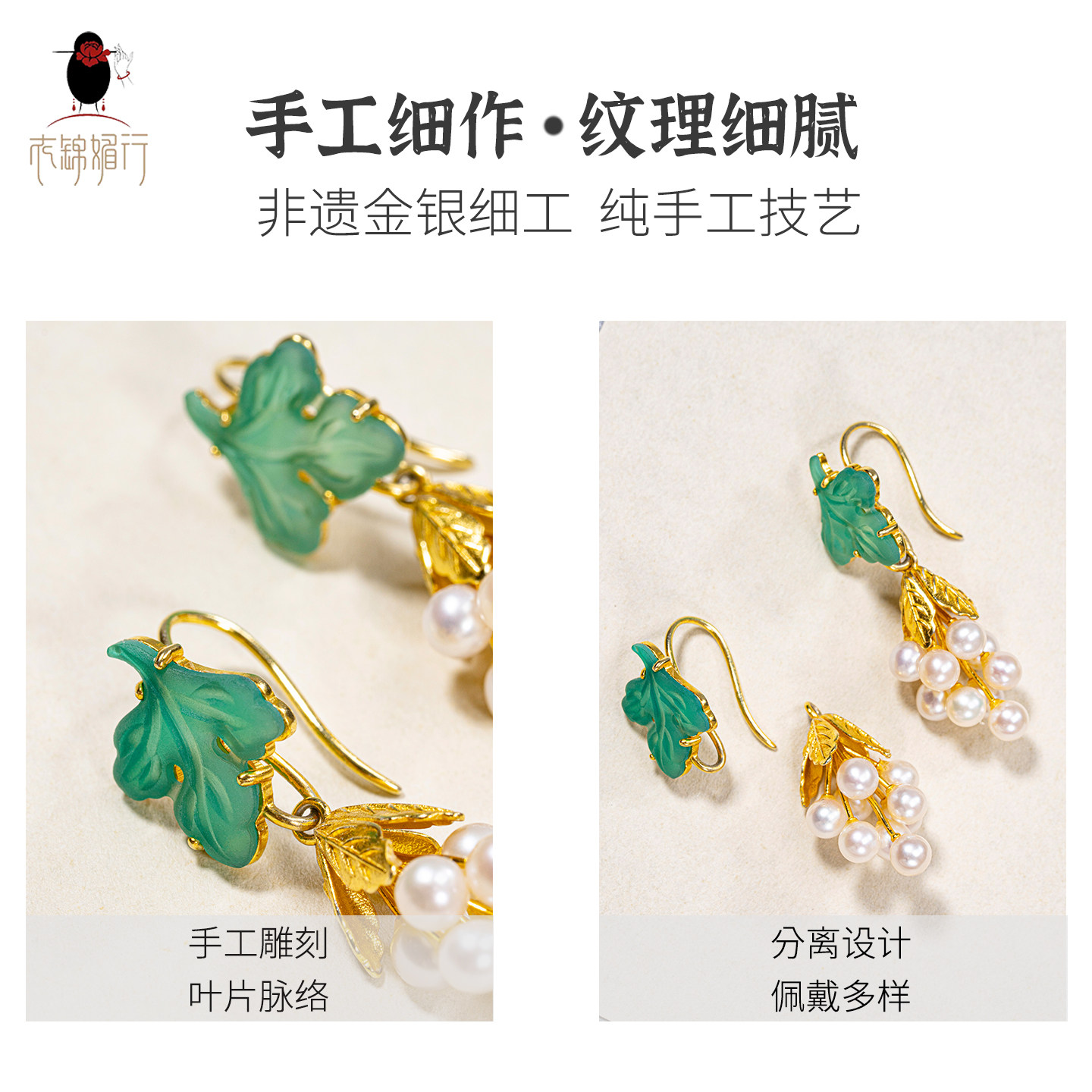📚 衣锦媚行新中式国风耳坠复古珍珠葡萄耳环女轻奢高级感银镀金耳饰