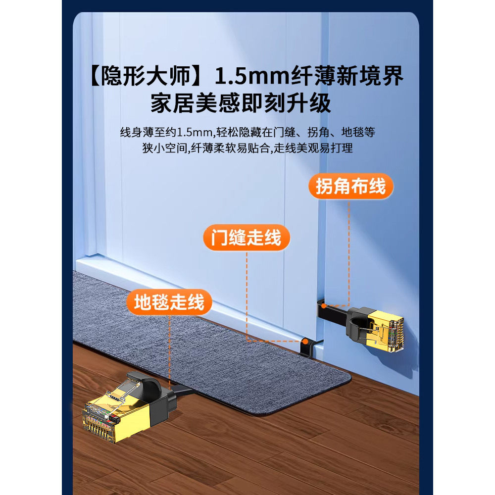 📚 超六类千兆扁平网线短cat6弯头七8类万兆扁平家用路由器宽带细线