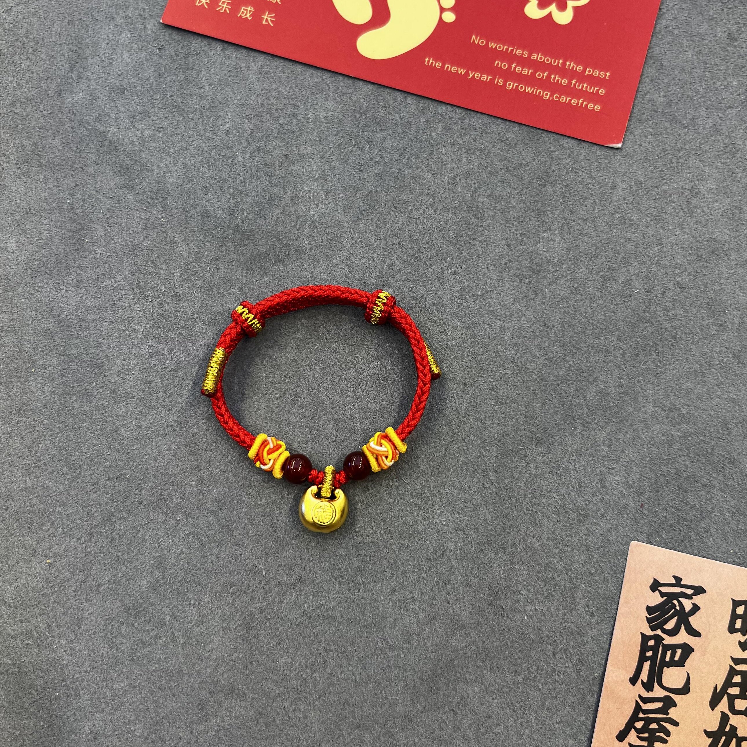📚 小胖福黄金手绳999足金手链红绳宝宝平安锁小金坨吊坠送女友礼物