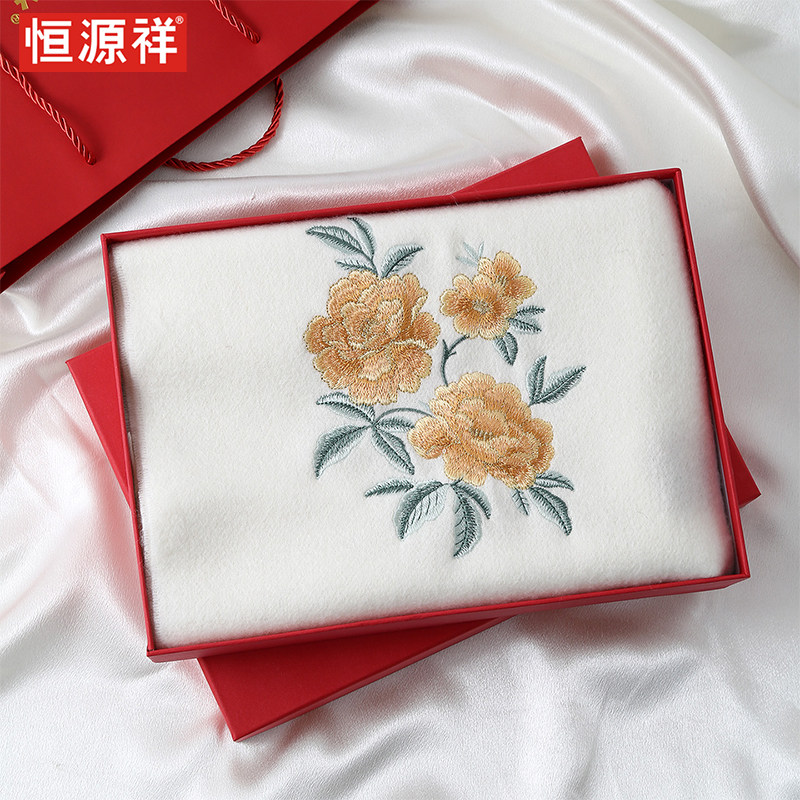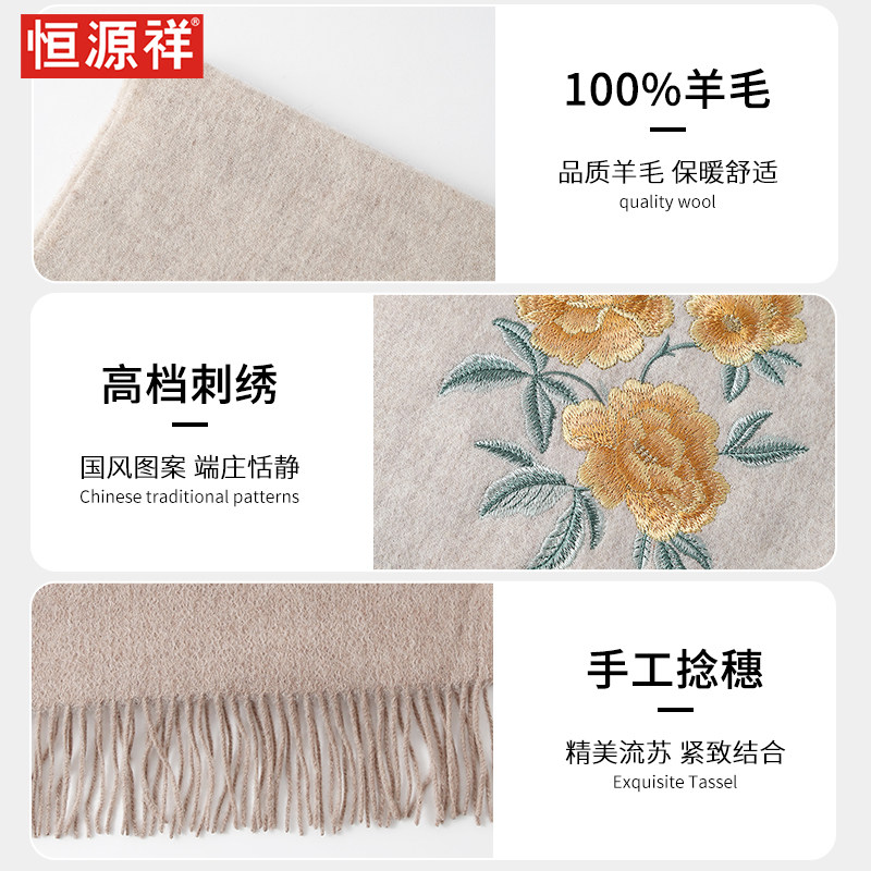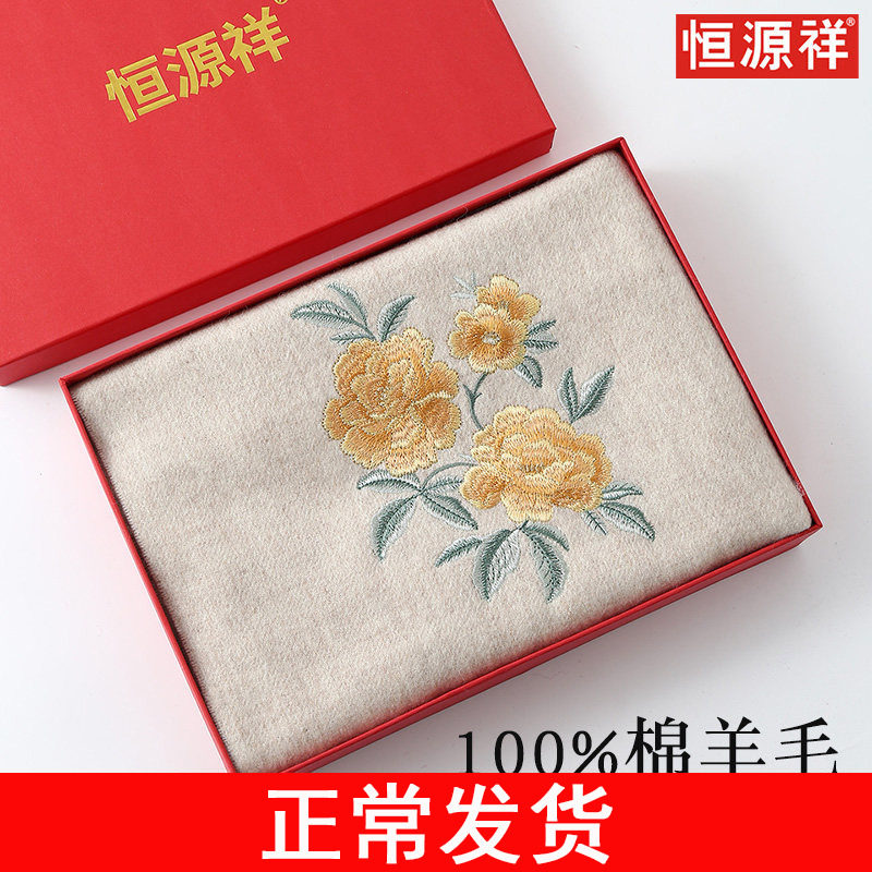 📚 恒源祥纯羊毛围巾女冬季国风刺绣送妈妈老年人保暖送长辈节日礼盒