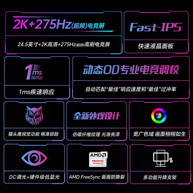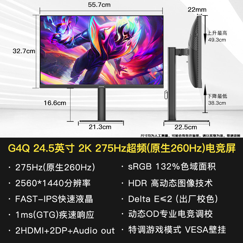 📚 SANC24.5英寸2K显示器FastIPS面板275Hz高清电竞升降旋转支架G4Q