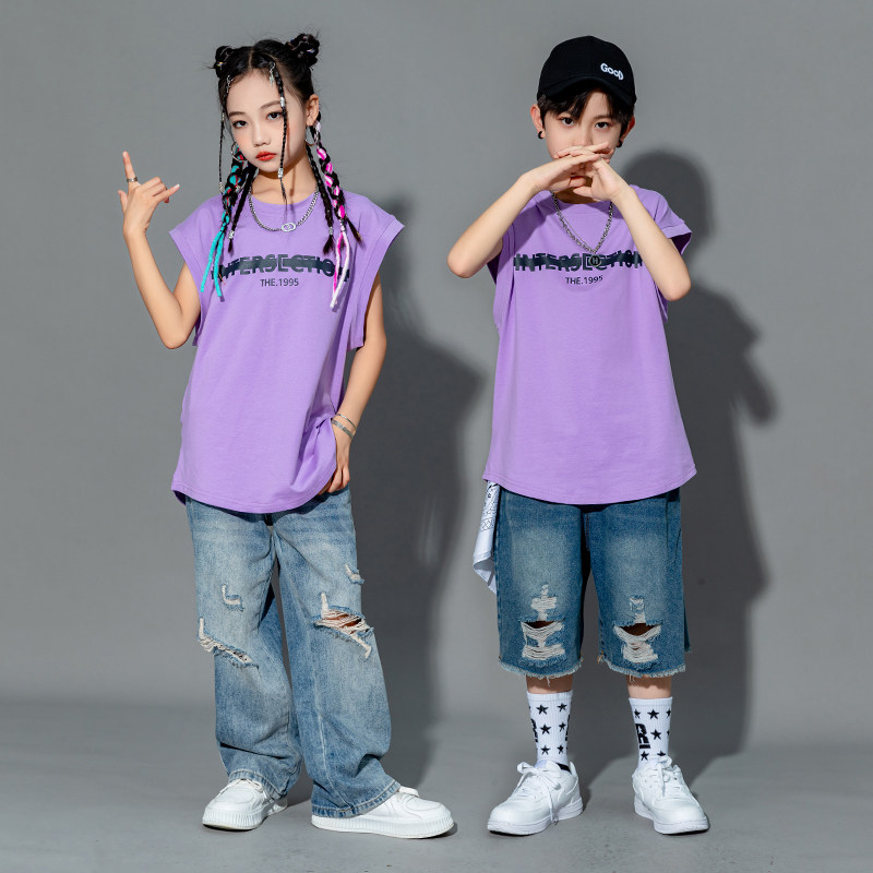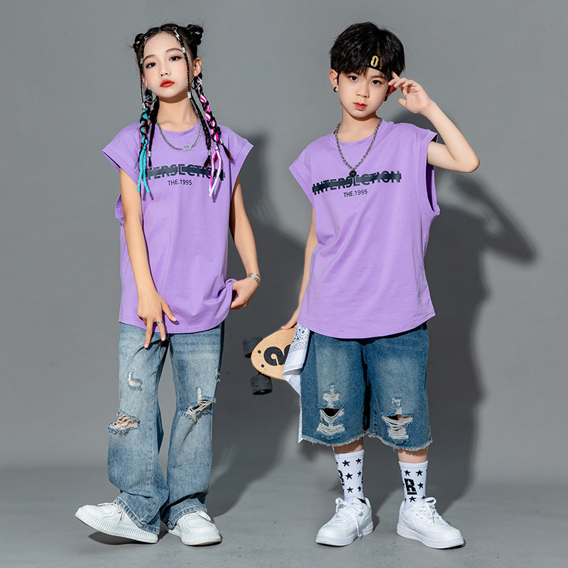 📚 潮流街舞男女酷帅嘻哈宽松背心裤子hiphop男女童装街舞套装爵士舞