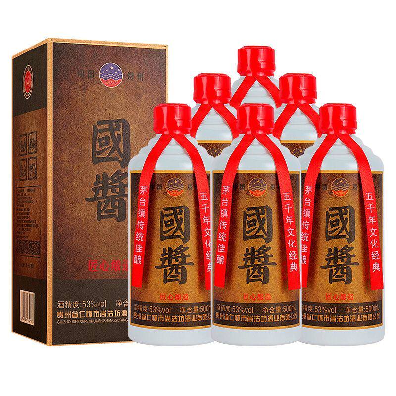 📚 国酱白酒53度酱香酒水整箱500ml*6瓶礼盒装纯粮酒送手提袋送礼酒