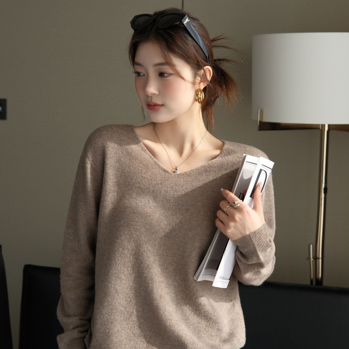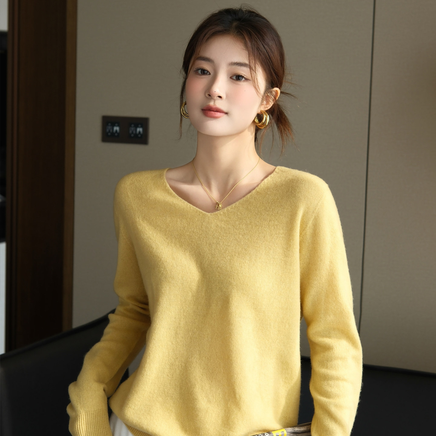 📚 龙妹白色V领羊绒打底衫女内搭外穿毛衣2026春季新款针织宽松上衣