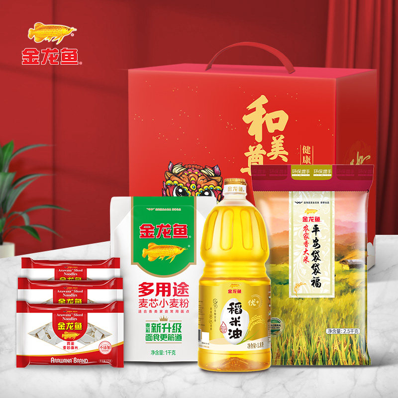 📚 金龙鱼食用油礼盒装米油套装大米面条粮油礼盒节日送礼大礼包团购