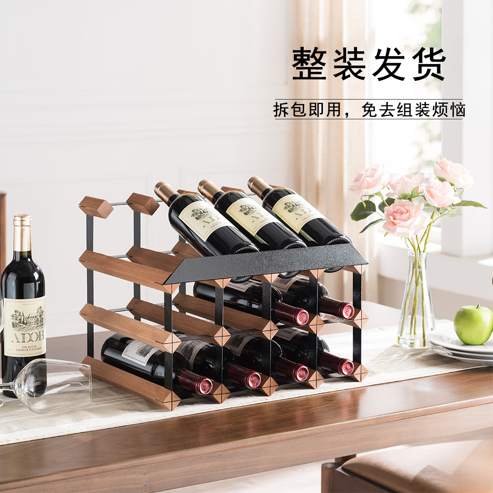 📚 红酒架摆件现代轻奢小酒架斜放展示创意酒窖酒柜实木架子置物架