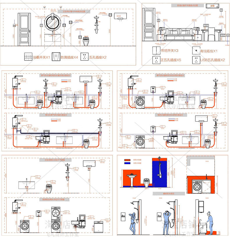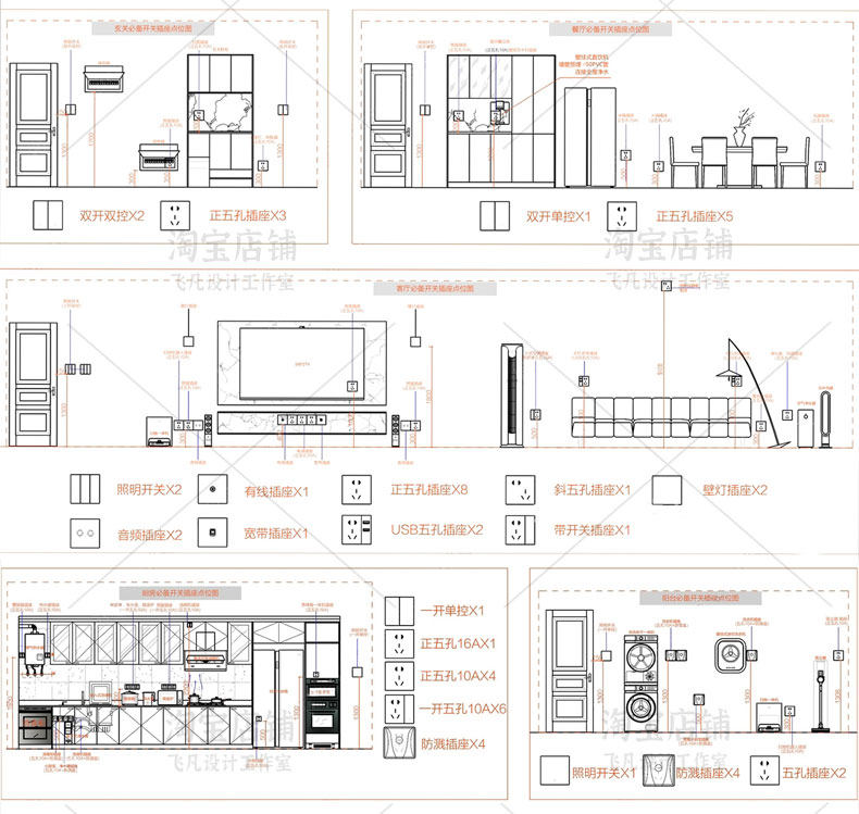 📚 2026年全屋水电点位机电连线图及开关插座灯具图例图库CAD施工图