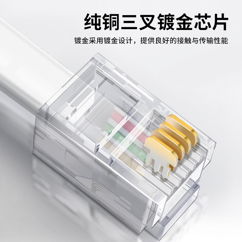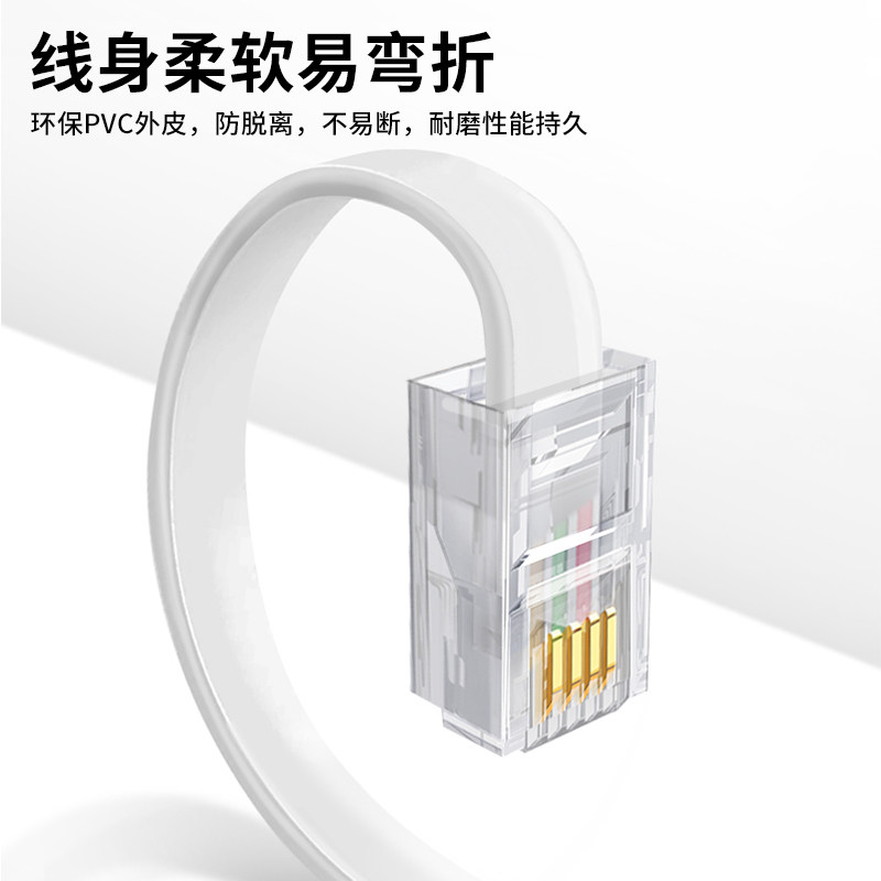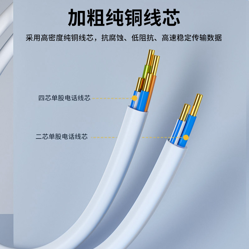 📚 三堡 座机电话线水晶头二芯/4芯6P4C电话线模块对接接头双头成品四芯电话线单股/多股纯铜电话话筒连接线