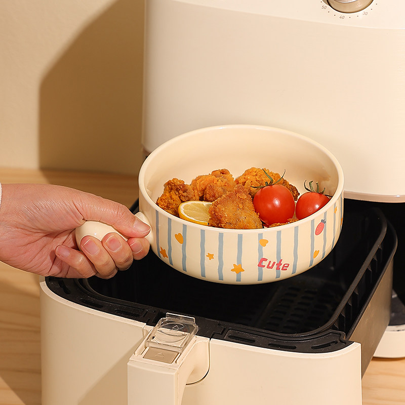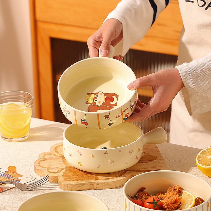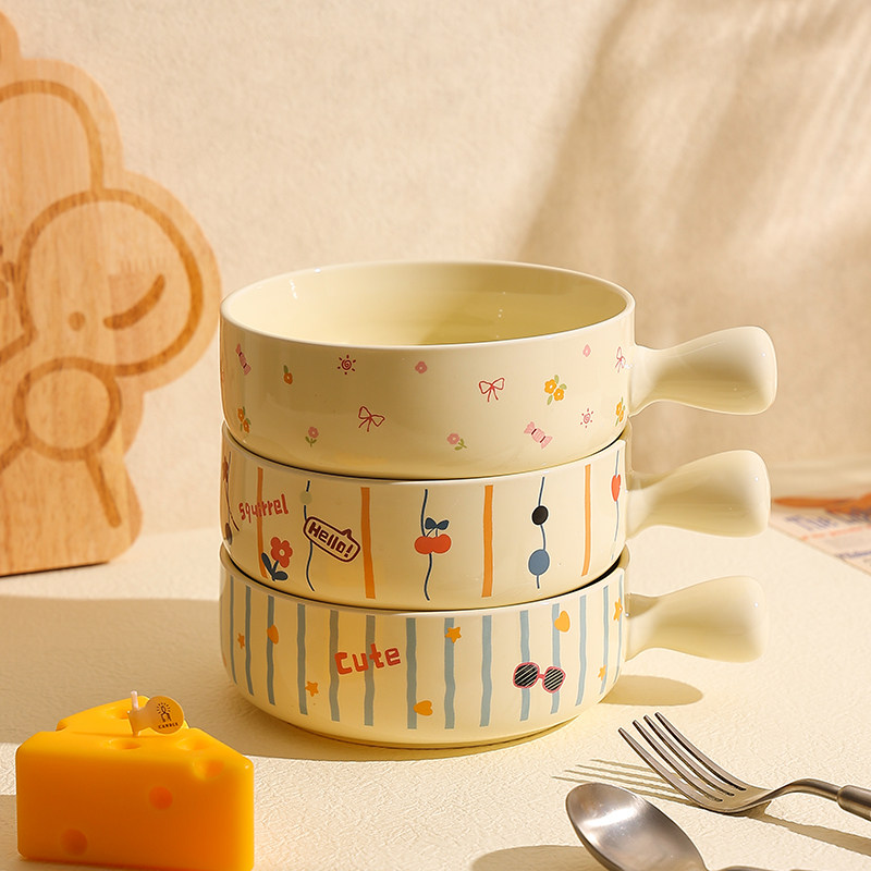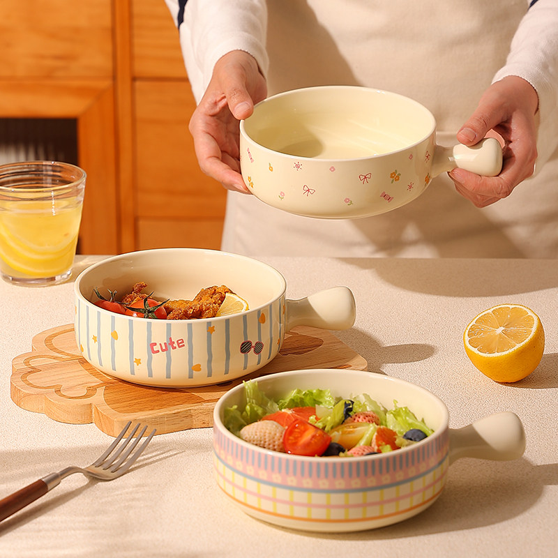 📚 网红陶瓷手柄碗女生高颜值拌面碗打饭碗沙拉水果盘碗可爱单柄烤碗