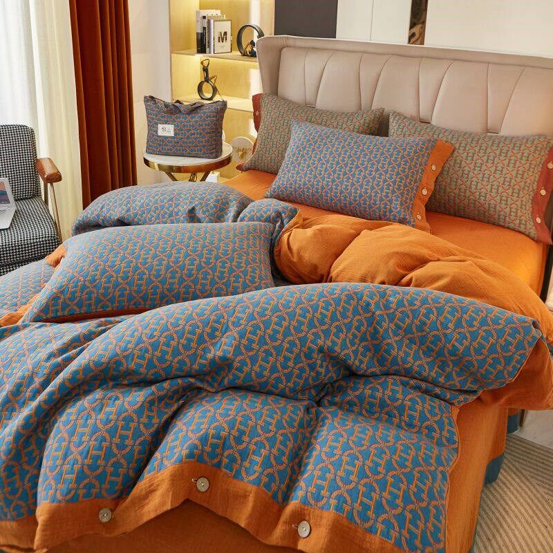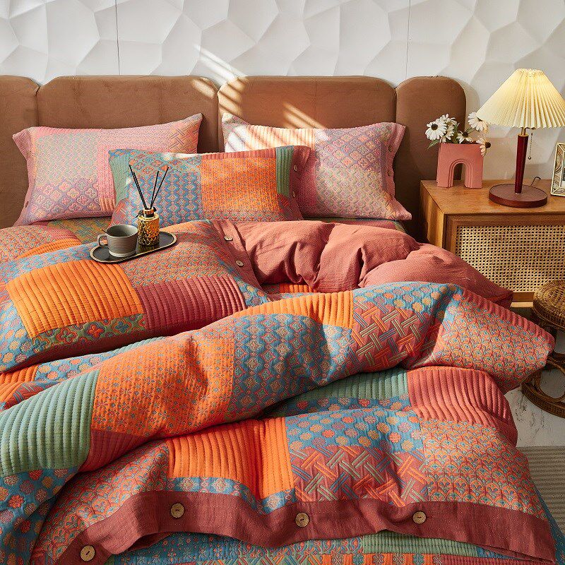 📚 复古风全棉色织双层纱三层纱单件被套纯棉加厚被罩床盖款床上用品