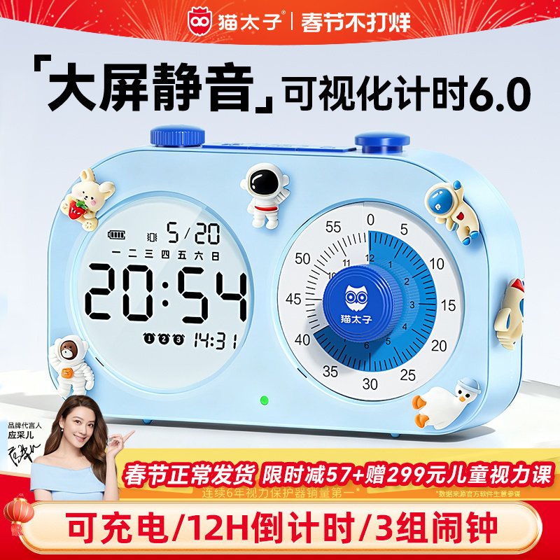 💥“猫太子计时器小学生自律神器闹钟,静音定时儿童学习专用时间管理器,秒变学霸小助手!”🎉