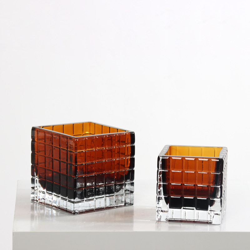 📚 简约现代方形格子棕色茶色玻璃花瓶洽谈桌茶几客餐厅软装饰品摆件