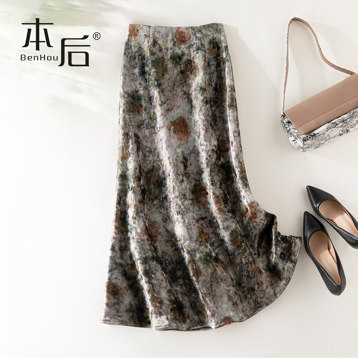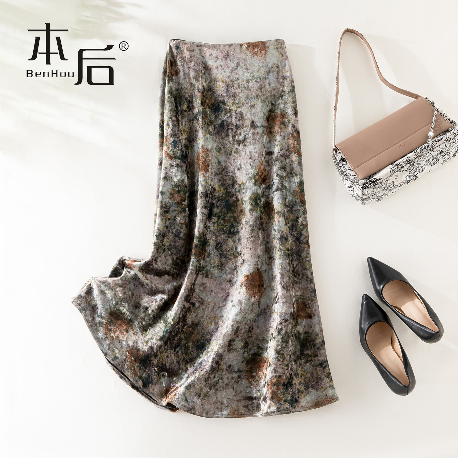 📚 29851 水墨风加绒鱼尾裙秋冬丝绒半身裙女2025新款松紧腰包臀裙