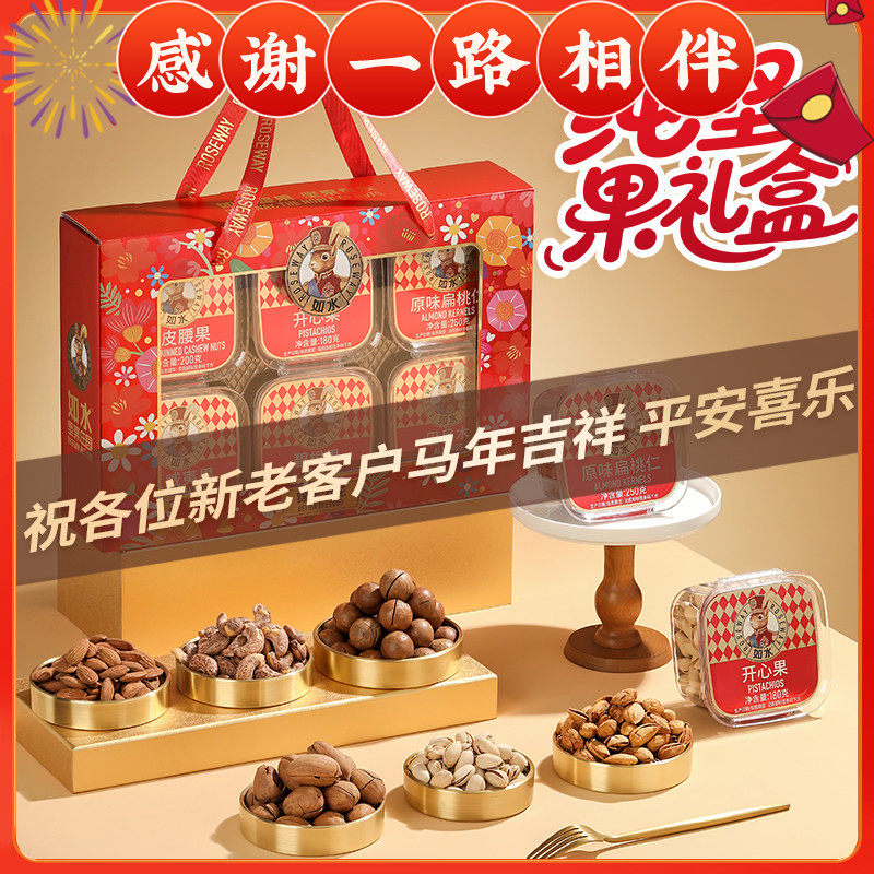 📚 如水锦上添花礼盒1150g6罐纯坚果春节送礼零食过节团购送人亲戚