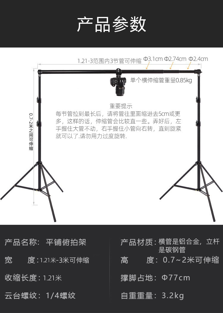 📚 专业相机俯拍架衣服平铺拍照俯视拍照脚架书法钢琴DV录拍视频架子