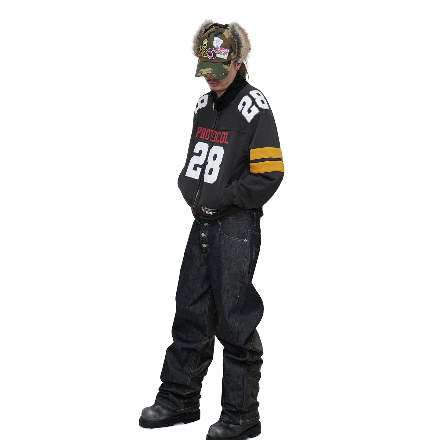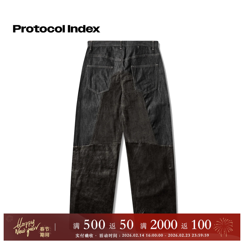 📚 protocol index 25FW 街头复古做旧皮革拼接阔腿工装牛仔裤
