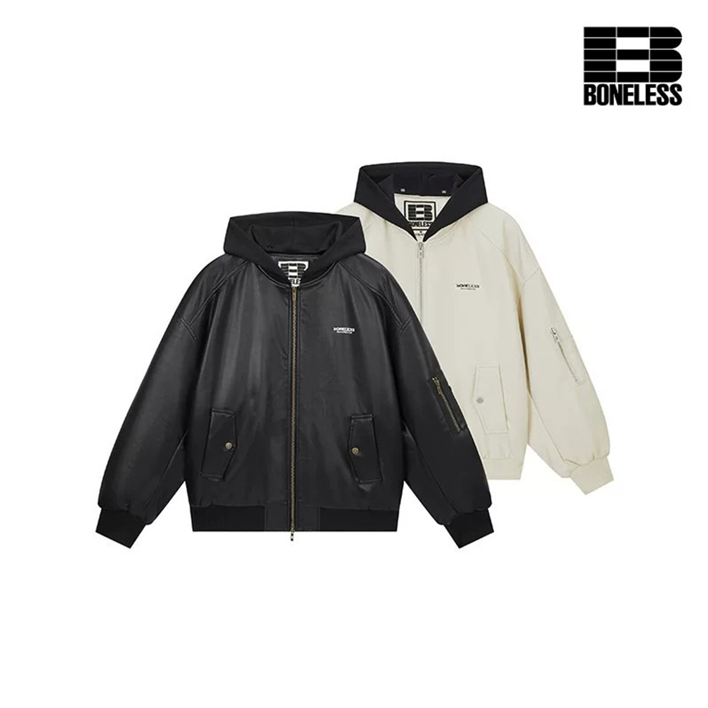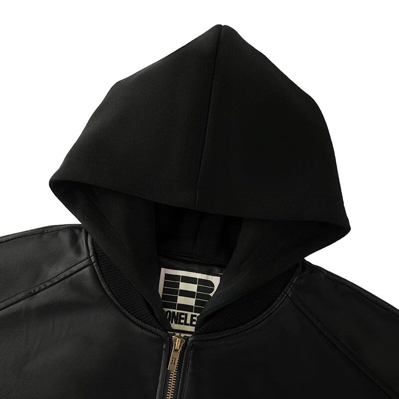 📚 【蔡徐坤同款】BONELESS复古MA1飞行员可拆卸帽子PU皮夹克外套