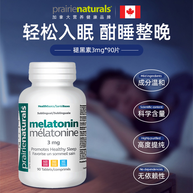📚 PrairieNaturals褪黑素睡眠片3mg改善睡眠闪睡【效期2026年11月】