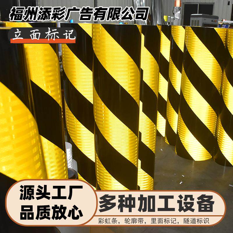 📚 添彩黄黑立面标记隧道口铝板斜纹弧形IV反光膜检修道防撞警示轮廓
