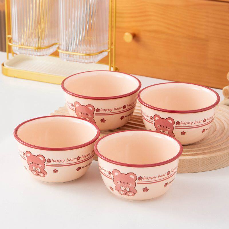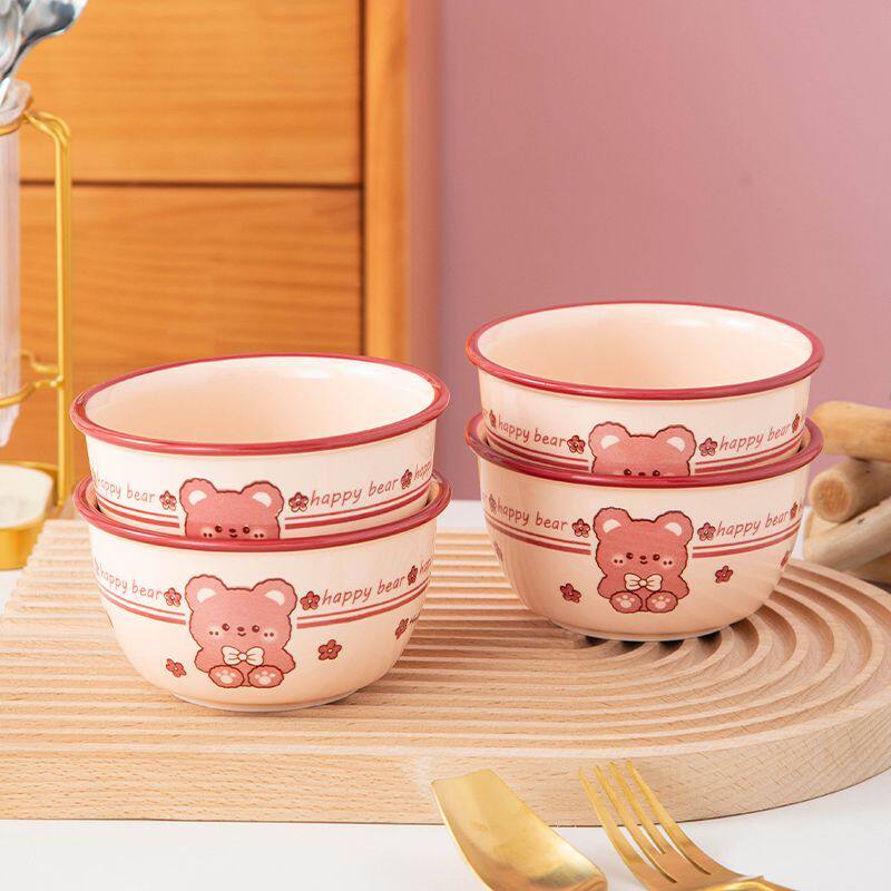 📚 碗家用米饭碗网红高颜值吃饭碗甜品碗可爱呆萌熊碗耐高温餐具套装