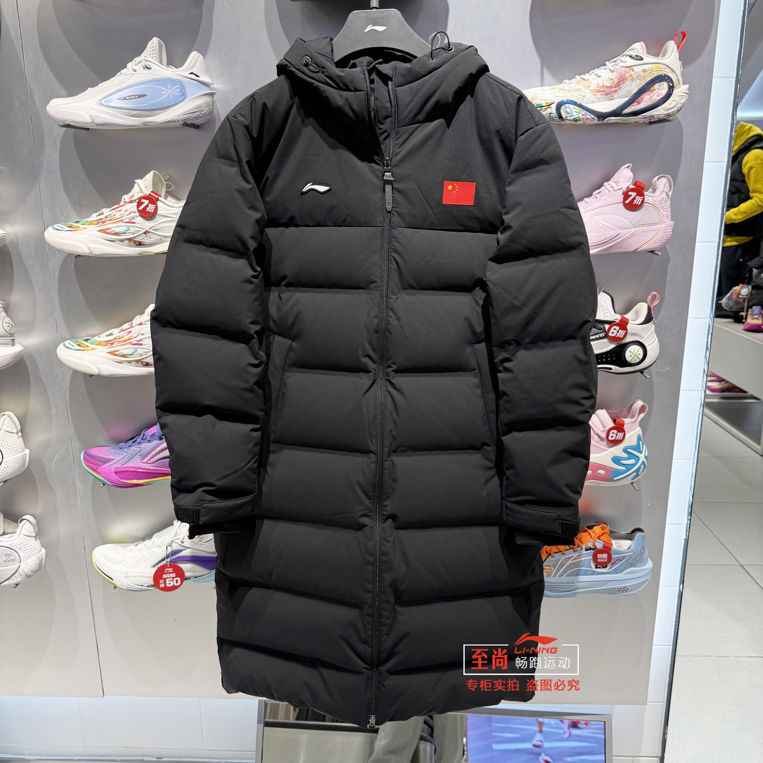 📚 李宁长款羽绒服男子2025新款荣耀系列90%鸭绒保暖国旗羽绒AYMV659
