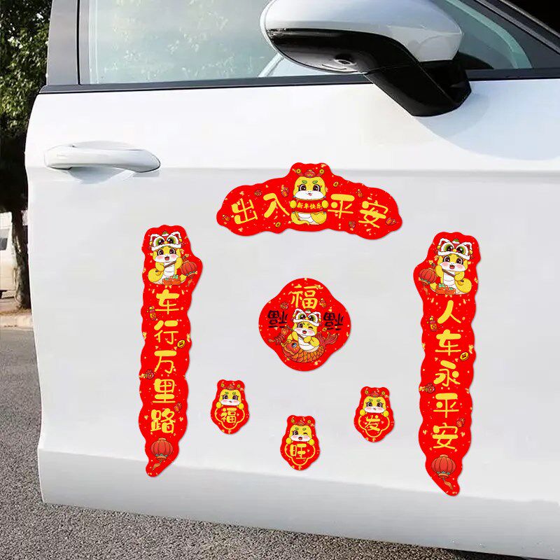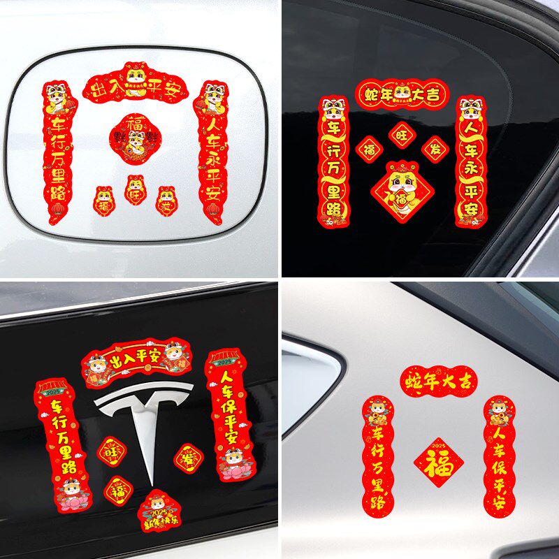 📚 2025年汽车对联蛇年车贴迷你磁吸车门油箱盖新年出入平安车标贴纸
