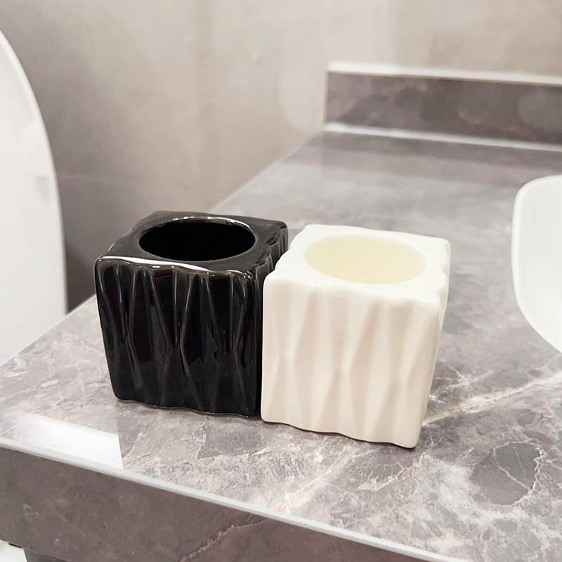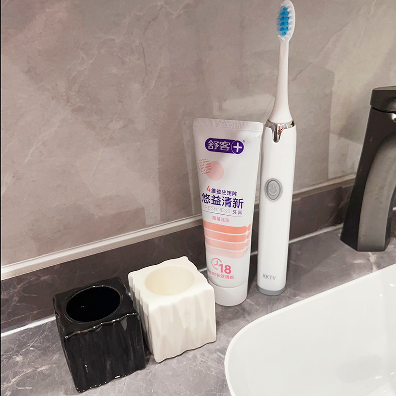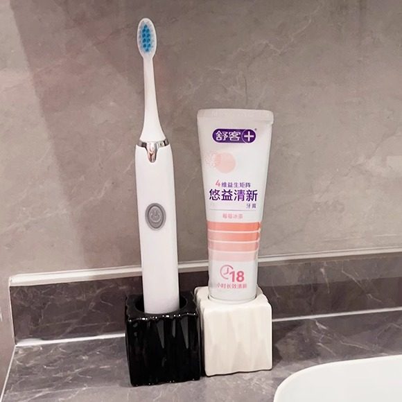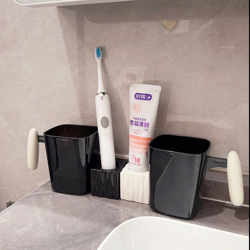 📚 轻奢牙刷架高级陶瓷牙膏筒黑白牙刷架子轻便省空间易携带置物架稳
